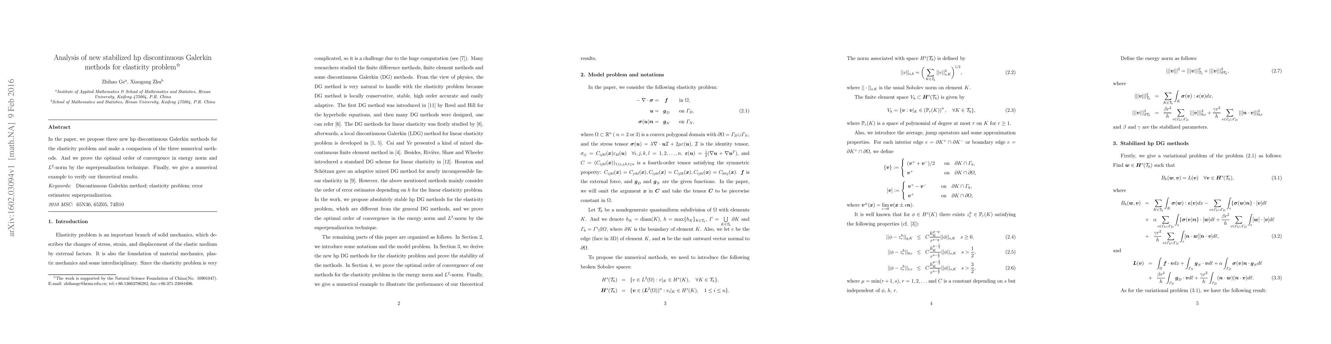 This paper proposes three new hp discontinuous Galerkin methods for solving elasticity problems, demonstrating optimal order of convergence in both energy norm and $L^2$-norm through superpenalization technique.