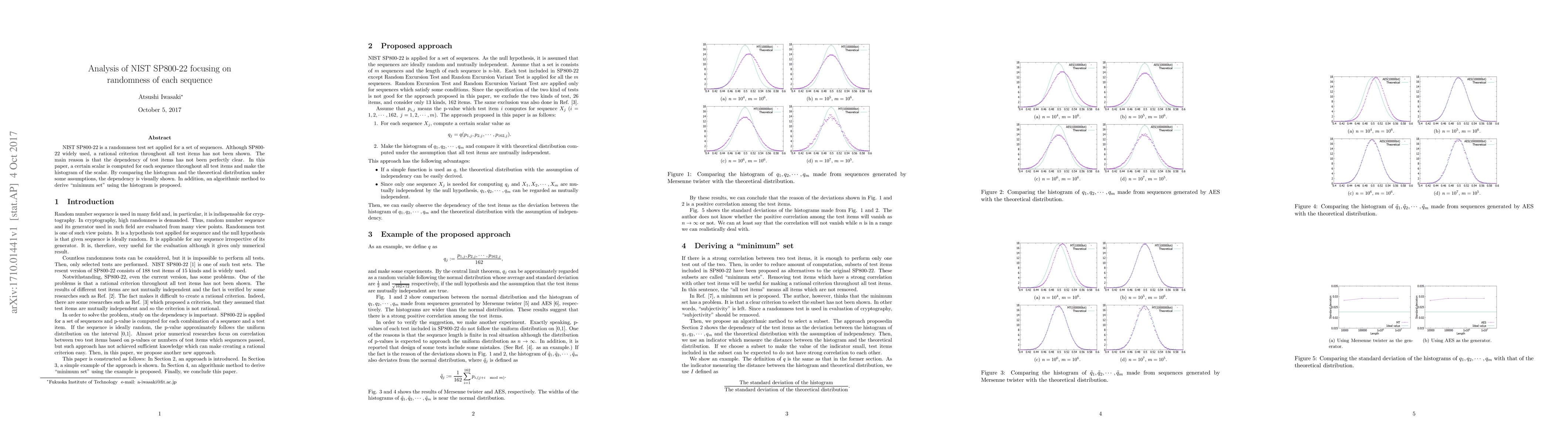NIST SP800-22 is a randomness test set applied for a set of sequences. Although SP800-22 widely used, a rational criterion throughout all test items has not been shown. The main reason is that the dependency of test items has not been perfectly clear. In this paper, a certain scalar is computed for each sequence throughout all test items and make the histogram of the scalar. By comparing the histogram and the theoretical distribution under some assumptions, the dependency is visually shown. In addition, an algorithmic method to derive "minimum set" using the histogram is proposed.