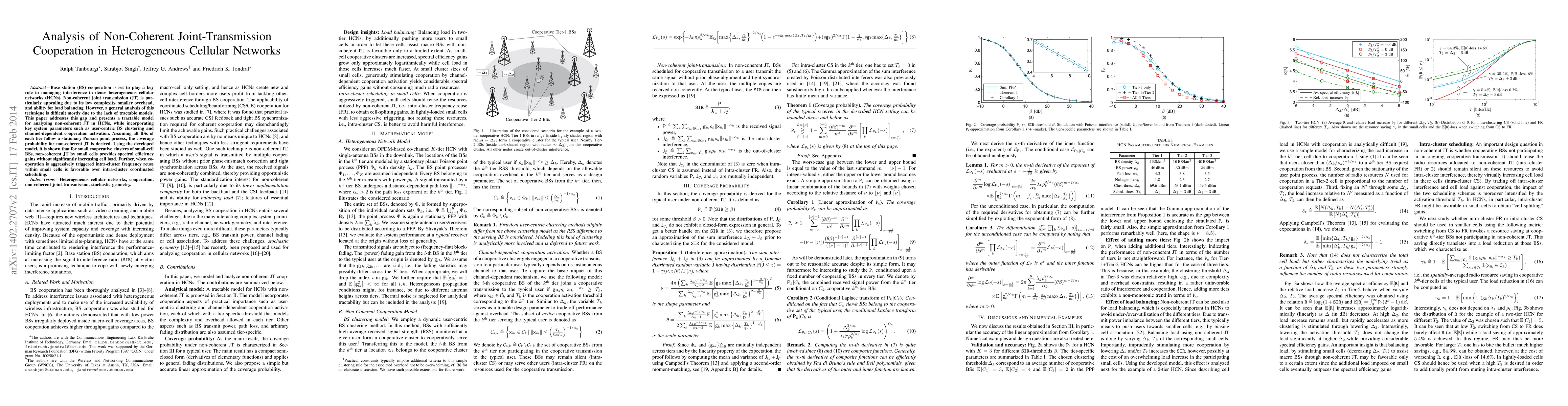 This paper develops a tractable model for analyzing non-coherent joint transmission in heterogeneous cellular networks, showing that small-cell base station cooperation can enhance spectral efficiency without overloading cells. It finds that intra-cluster frequency reuse is more beneficial than coordinated scheduling when cooperation is frequently activated.