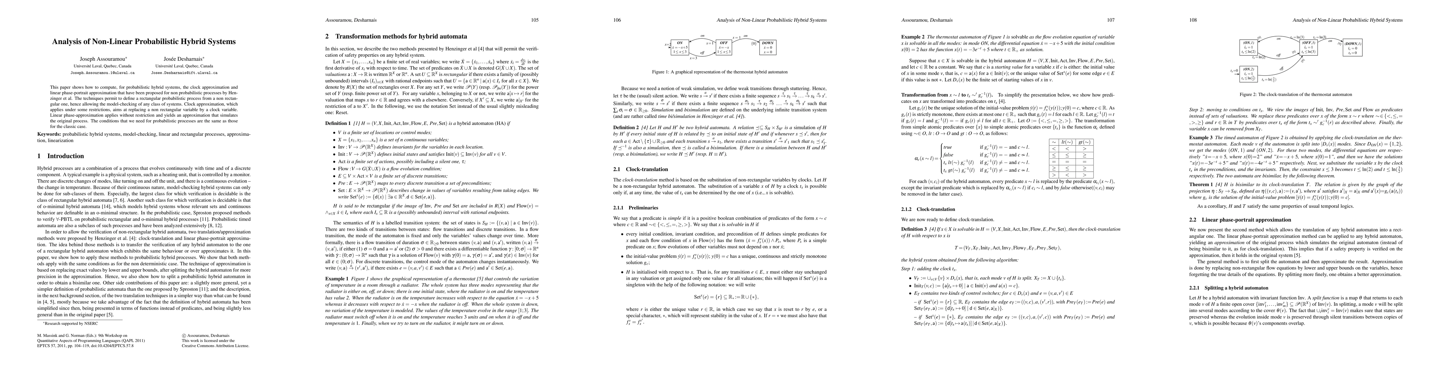 This paper develops methods to compute clock and linear phase-portrait approximations for probabilistic hybrid systems, enabling model-checking of various system classes. The clock approximation replaces non-rectangular variables with clock variables, while the linear phase-approximation provides a simulation of the original process without restrictions.