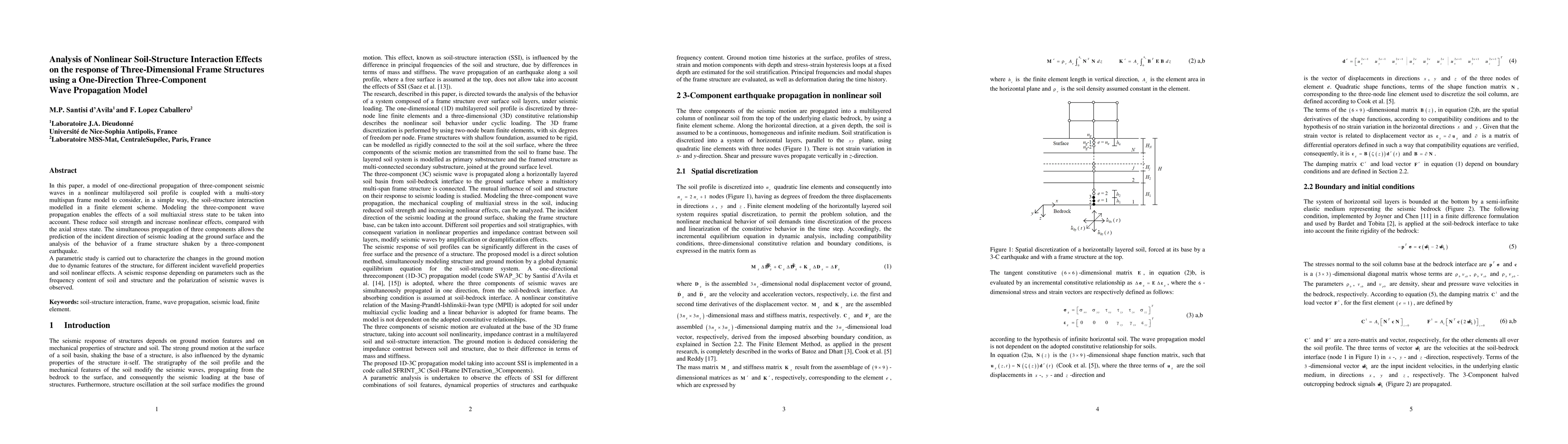 A study analyzed how seismic waves affect 3D frame structures through soil-structure interaction, revealing changes in ground motion depending on wave properties and soil nonlinearity.
