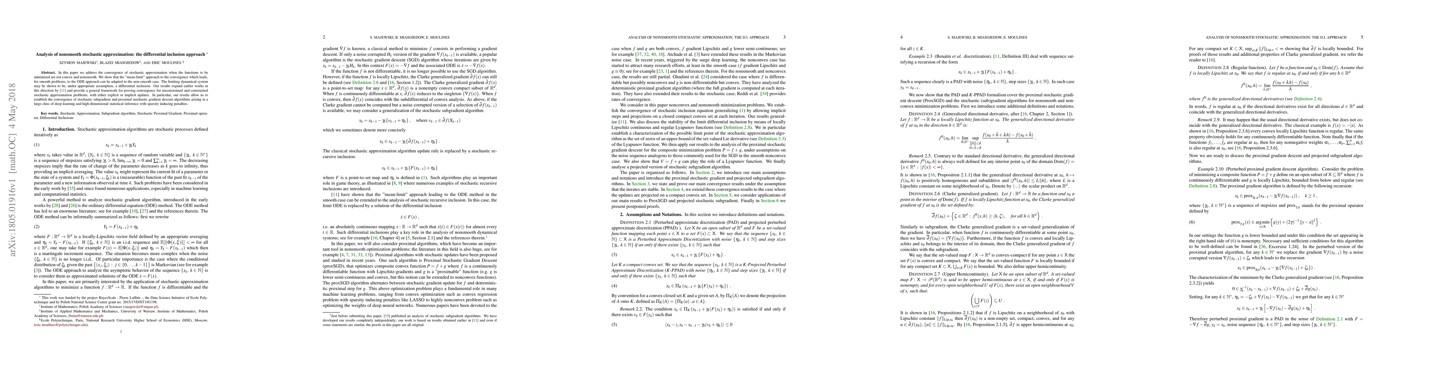 This paper shows that stochastic approximation methods can converge for nonsmooth functions, adapting earlier smooth-case approaches to a non-smooth case using differential inclusion analysis. It provides a general framework for proving convergence in unconstrained and constrained problems with sparsity-inducing penalties.