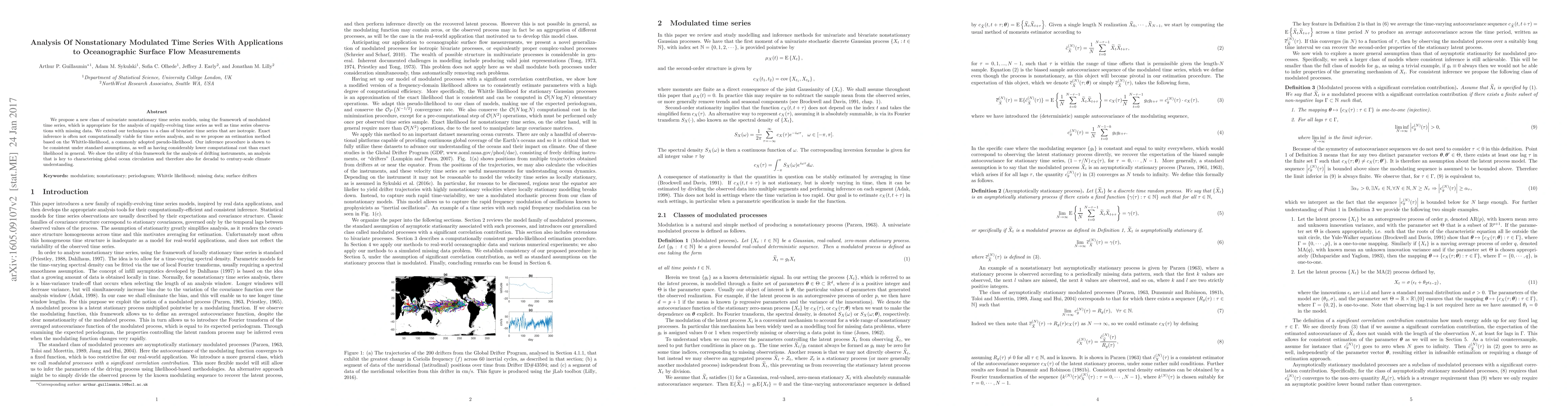 This paper introduces a new nonstationary time series model for rapidly-evolving and missing data series, employing a modulated time series framework. It proposes a Whittle-likelihood estimation method for efficient inference, demonstrating its application to oceanographic flow measurements and drifting instruments for climate studies.