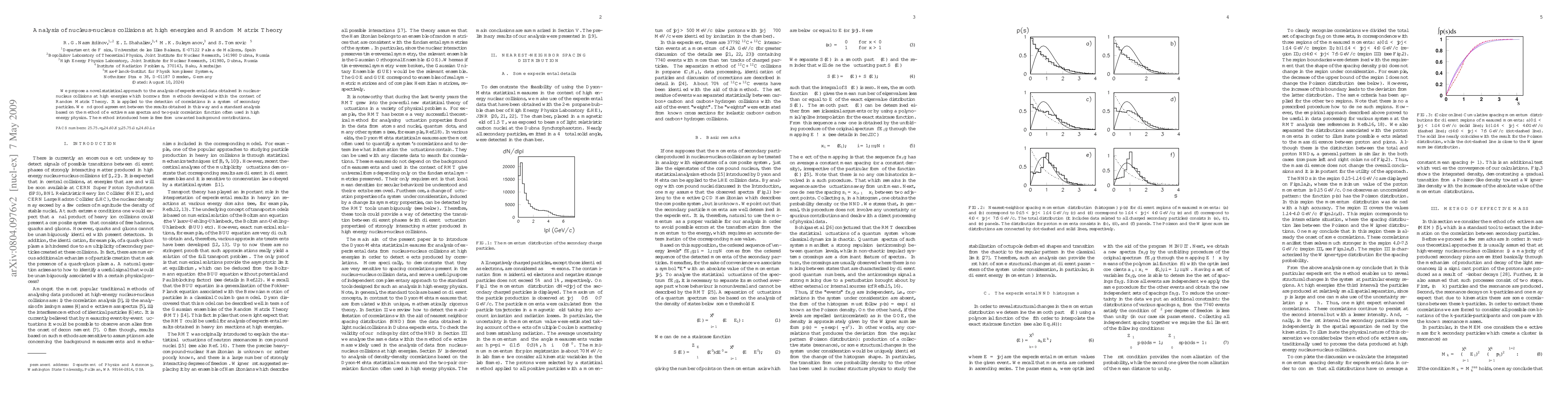 This paper proposes a novel statistical method using Random Matrix Theory to analyze high-energy nucleus-nucleus collision data, detecting correlations in emitted particle momentum distributions. The new approach shows good agreement with traditional methods and eliminates unwanted background contributions.