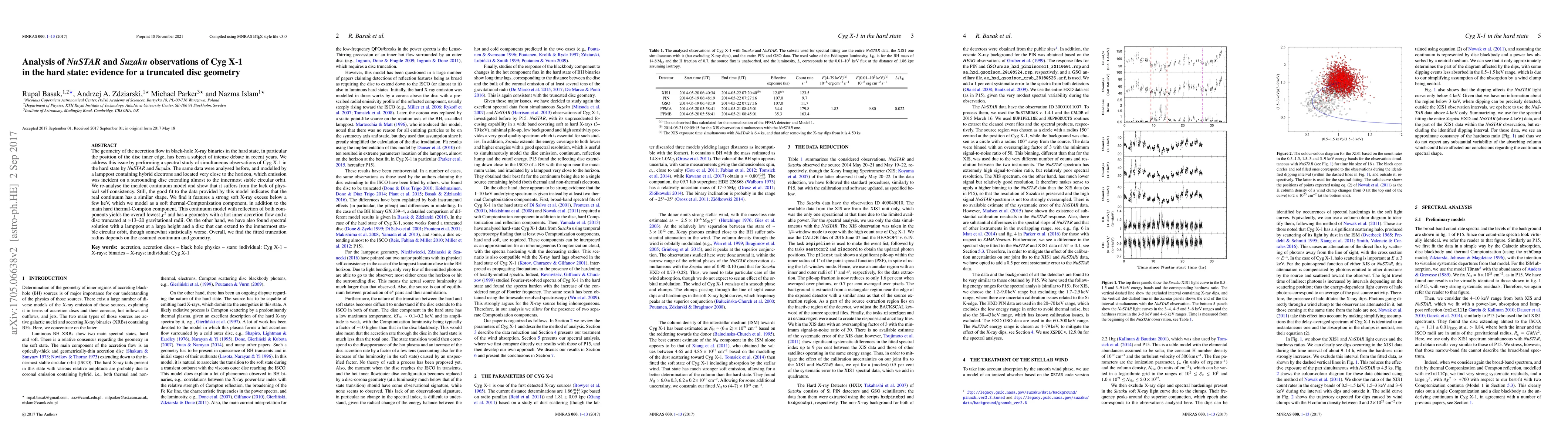 The geometry of the accretion flow in black-hole X-ray binaries in the hard state, in particular the position of the disc inner edge, has been a subject of intense debate in recent years. We address this issue by performing a spectral study of simultaneous observations of Cyg X-1 in the hard state by NuSTAR and Suzaku. The same data were analysed before, and modelled by a lamppost containing hybrid electrons and located very close to the horizon, which emission was incident on a surrounding disc extending almost to the innermost stable circular orbit. We re-analyse the incident continuum model and show that it suffers from the lack of physical self-consistency. Still, the good fit to the data provided by this model indicates that the real continuum has a similar shape. We find it features a strong soft X-ray excess below a few keV, which we model as a soft thermal-Comptonization component, in addition to the main hard thermal-Compton component. This continuum model with reflection of both components yields the overall lowest $\chi^2$ and has a geometry with a hot inner accretion flow and a disc truncated at $\simeq$13--20 gravitational radii. On the other hand, we have also found spectral solution with a lamppost at a large height and a disc that can extend to the innnermost stable circular orbit, though somewhat statistically worse. Overall, we find the fitted truncation radius depends on the assumed continuum and geometry.
