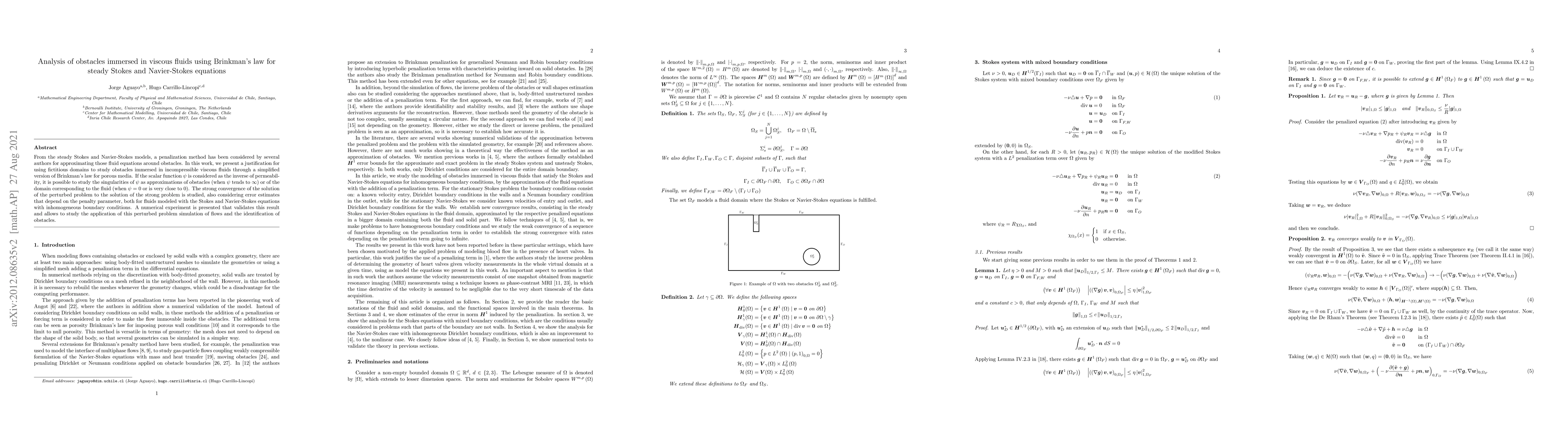 This paper explores the use of Brinkman's law to model obstacles in incompressible viscous fluids using penalization methods for steady Stokes and Navier-Stokes equations. It justifies the application of fictitious domains and studies the convergence of the perturbed problem to the strong solution, providing numerical validation for flow simulations and obstacle identification.