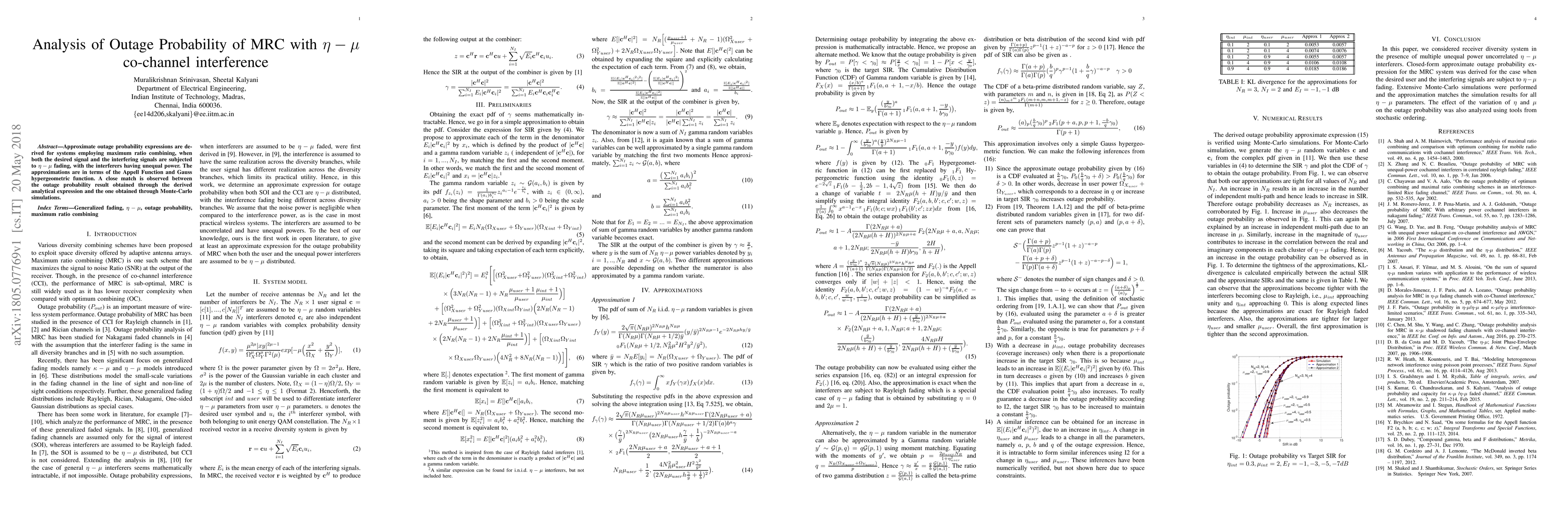 Approximate outage probability expressions are derived for systems employing maximum ratio combining, when both the desired signal and the interfering signals are subjected to $\eta-\mu$ fading, with the interferers having unequal power. The approximations are in terms of the Appell Function and Gauss hypergeometric function. A close match is observed between the outage probability result obtained through the derived analytical expression and the one obtained through Monte-Carlo simulations.