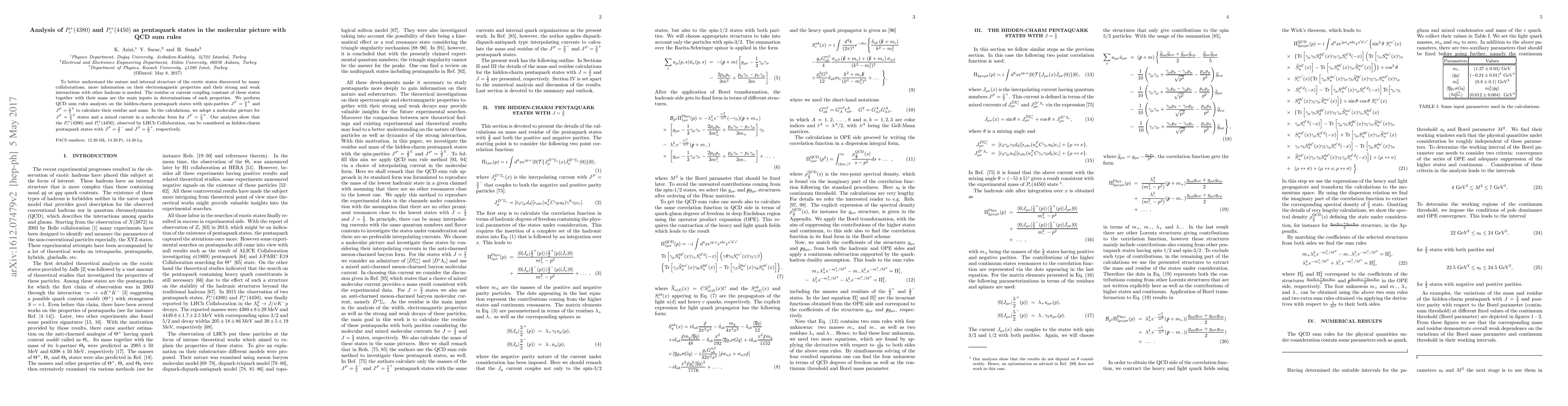 Researchers analyzed the $P_c^+(4380)$ and $P_c^+(4450)$ pentaquark states using QCD sum rules to determine their properties, finding they can be considered as hidden-charm pentaquark states with specific spin-parities.