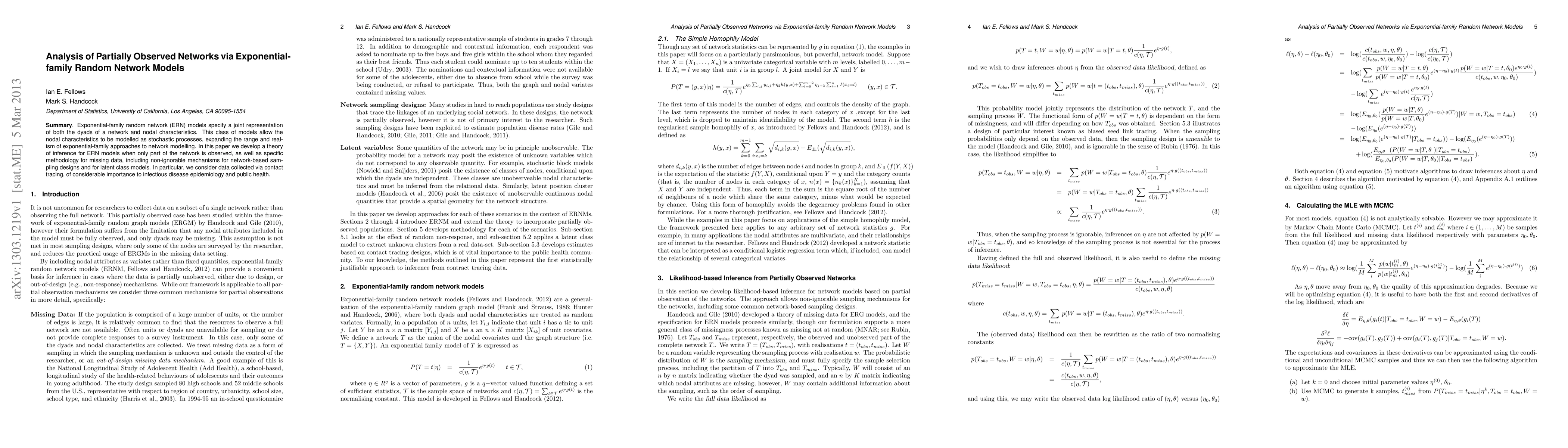 Exponential-family random network (ERN) models specify a joint representation of both the dyads of a network and nodal characteristics. This class of models allow the nodal characteristics to be modelled as stochastic processes, expanding the range and realism of exponential-family approaches to network modelling. In this paper we develop a theory of inference for ERN models when only part of the network is observed, as well as specific methodology for missing data, including non-ignorable mechanisms for network-based sampling designs and for latent class models. In particular, we consider data collected via contact tracing, of considerable importance to infectious disease epidemiology and public health.