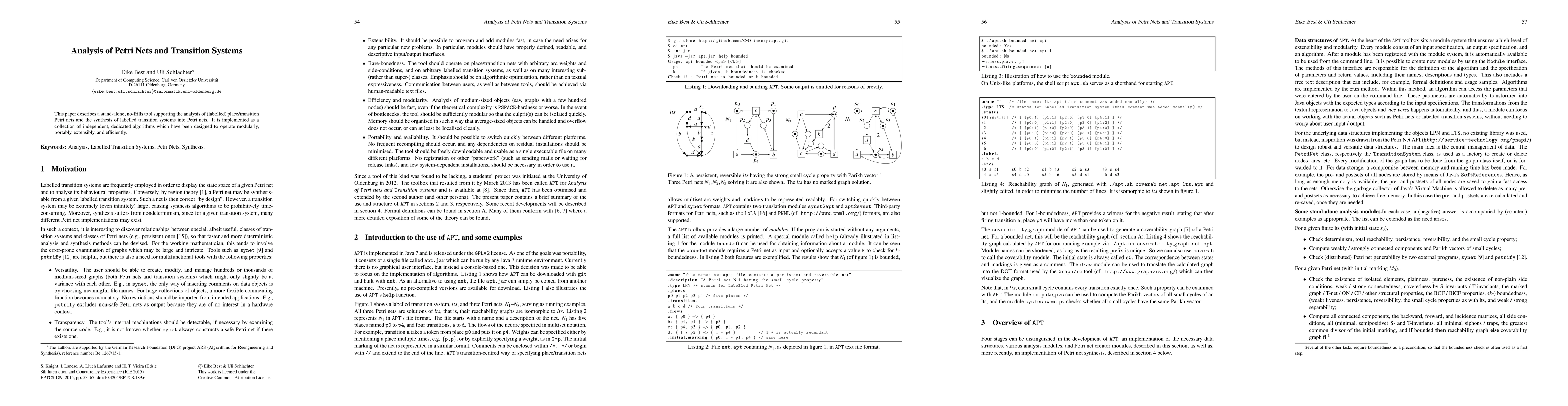 Summary: This paper presents a tool for analyzing labelled Petri nets and synthesizing labelled transition systems into Petri nets, featuring modular, portable, and efficient algorithms. The implementation supports independent and extensible operations for robust system analysis.