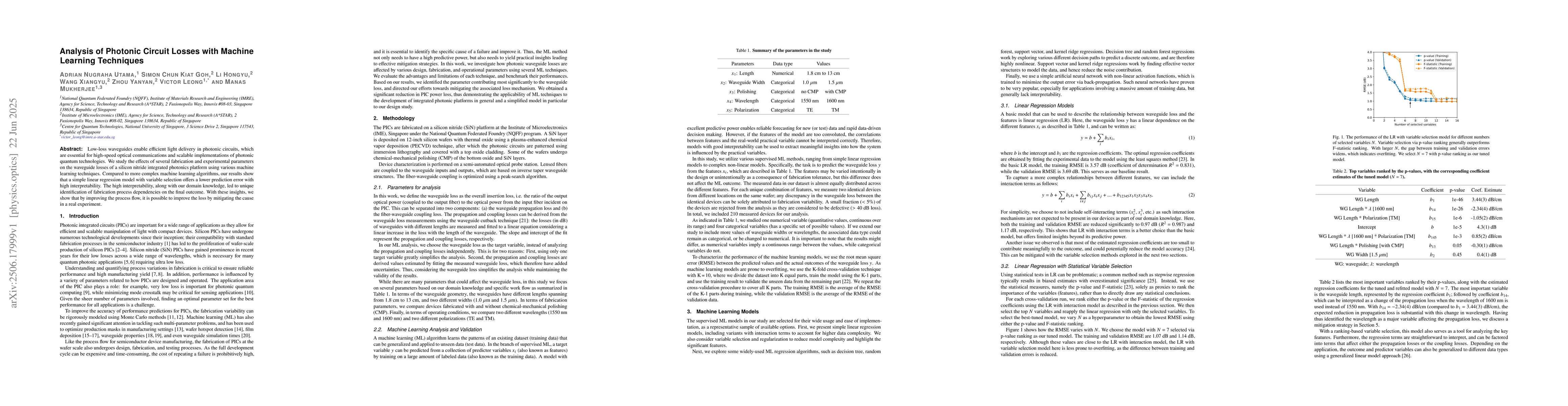 This research uses machine learning, specifically linear regression, to analyze and predict losses in silicon nitride photonic circuits. It found that this simple model, combined with domain knowledge, effectively identified fabrication process dependencies, leading to actionable insights for reducing losses in real experiments.