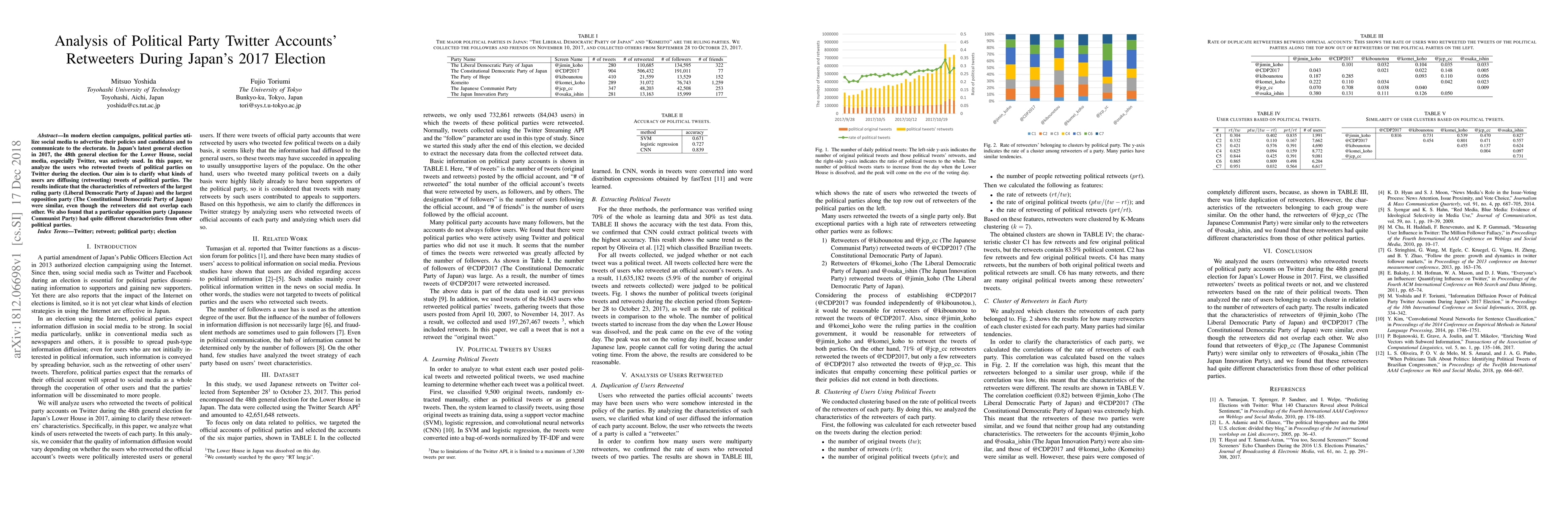 This study analyzed Twitter users who retweeted political party accounts during Japan's 2017 Lower House election.