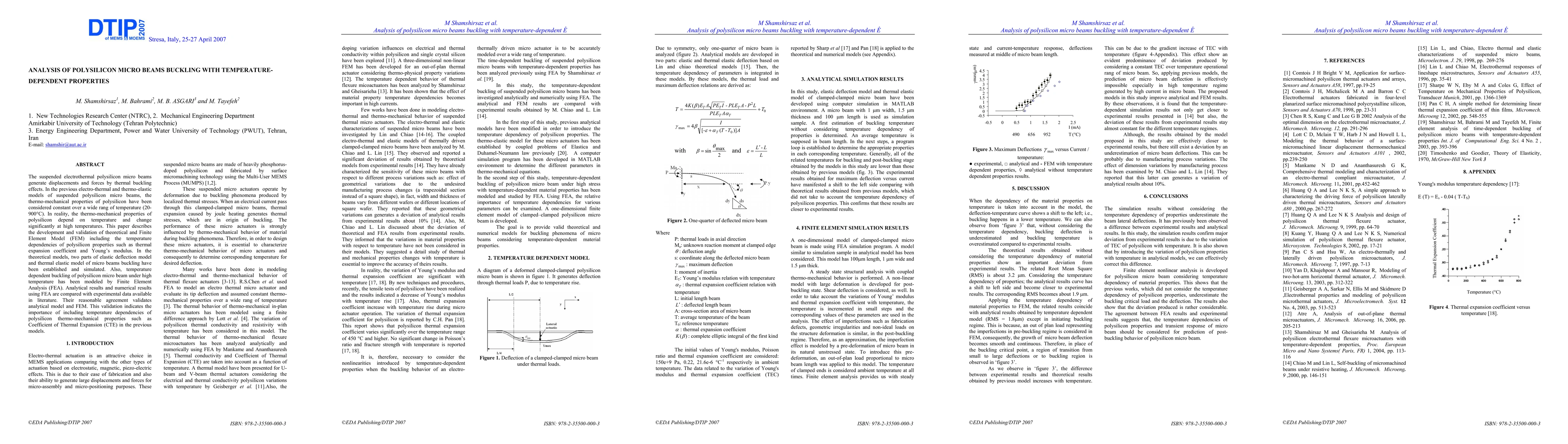 The paper presents modified analytical models and a temperature-dependent FEM for polysilicon micro beam buckling, incorporating temperature-dependent material properties.