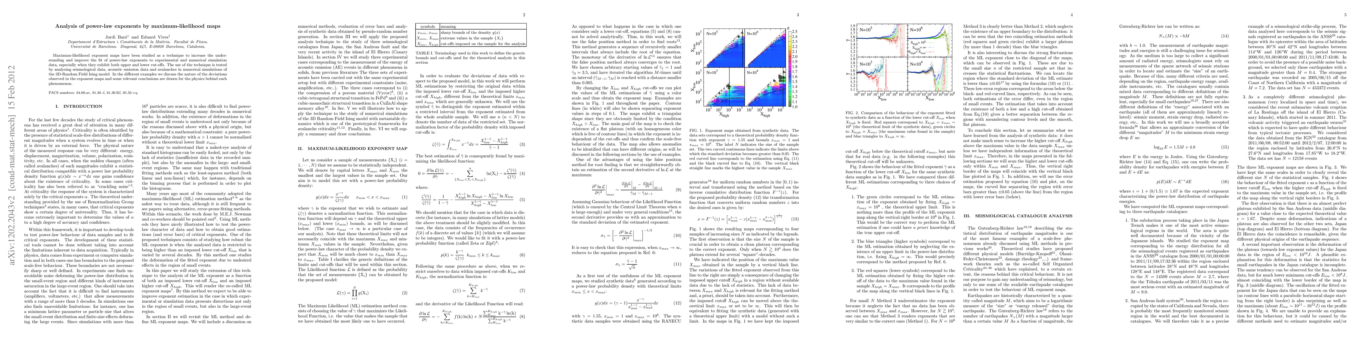 Maximum-likelihood exponent maps have been studied as a technique to increase the understanding and improve the fit of power-law exponents to experimental and numerical simulation data, especially when they exhibit both upper and lower cut-offs. The use of the technique is tested by analyzing seismological data, acoustic emission data and avalanches in numerical simulations of the 3D-Random Field Ising model. In the different examples we discuss the nature of the deviations observed in the exponent maps and some relevant conclusions are drawn for the physics behind each phenomenon.
