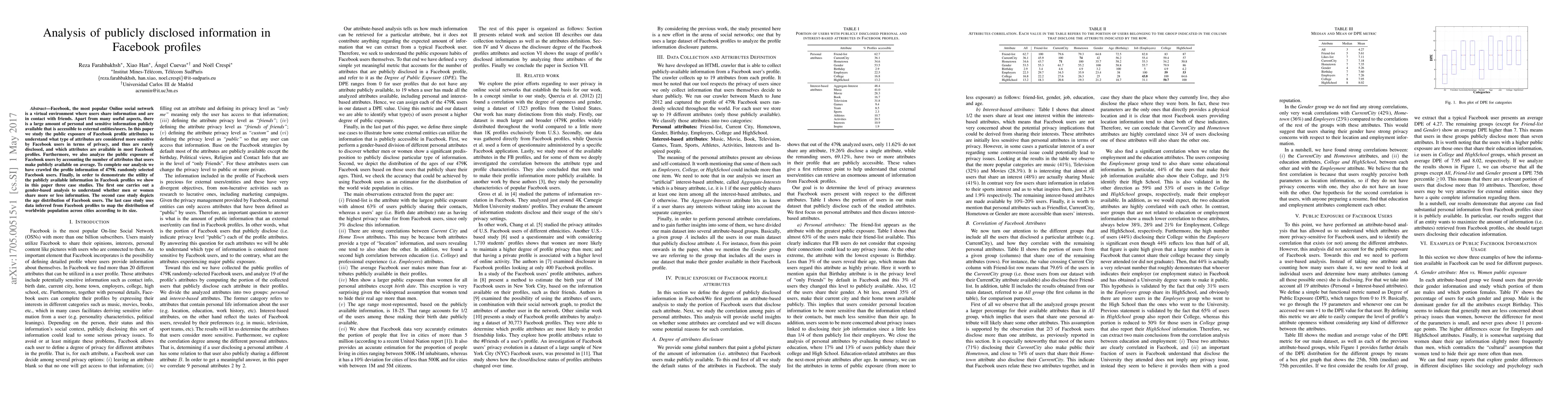 A study analyzed 479K Facebook profiles to understand what attributes users make publicly available, finding that certain attributes like gender and age are more sensitive than others, while others like location and interests are widely shared.