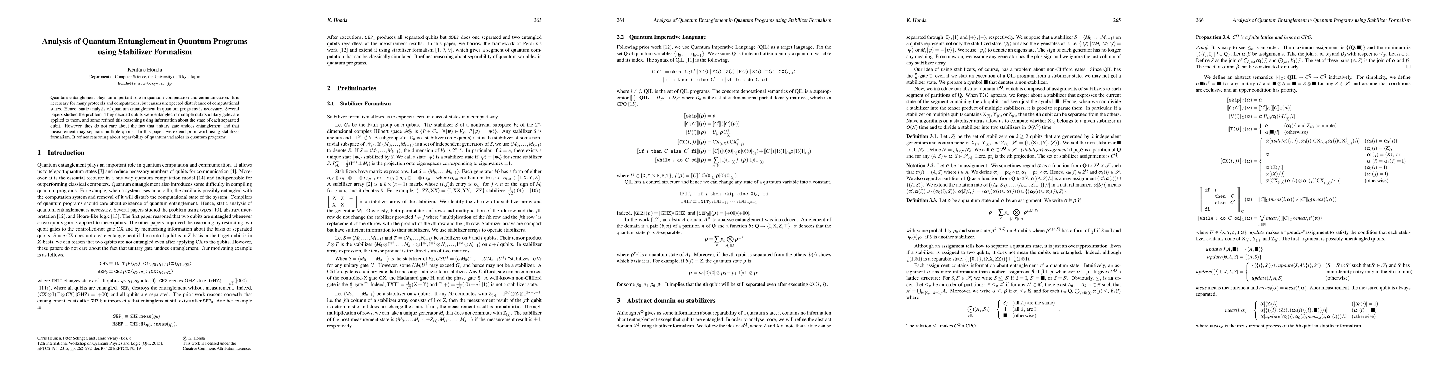 This paper explores quantum entanglement in quantum programs using the stabilizer formalism, addressing limitations in prior work by considering how unitary gates can undo entanglement and how measurements can separate qubits. It aims to refine static analysis of entanglement in quantum computations.