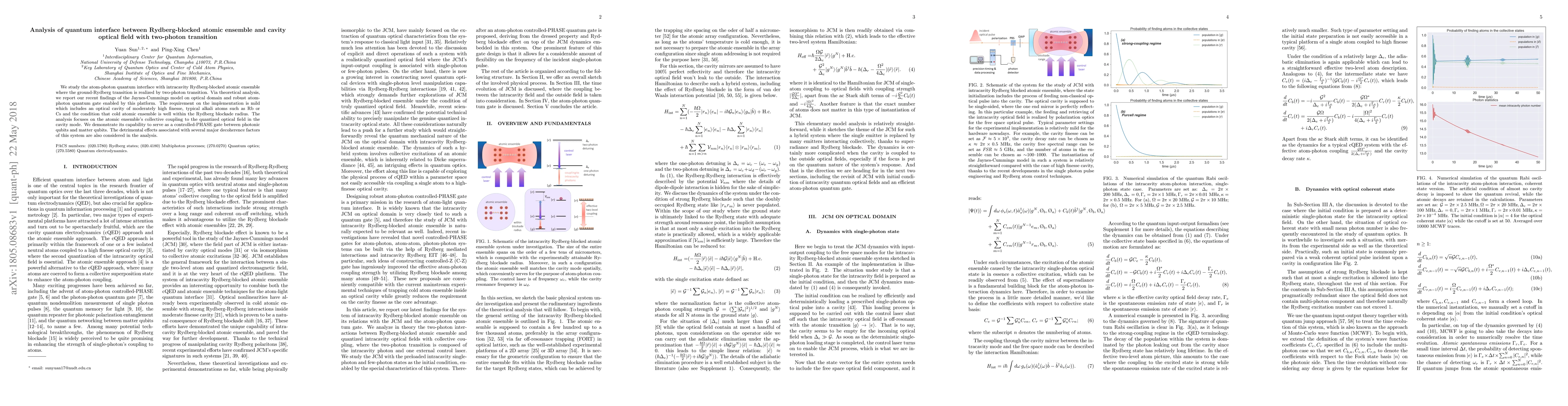 This paper investigates a quantum interface using a Rydberg-blocked atomic ensemble within an optical cavity, where the ground-Rydberg transition is achieved via a two-photon process. The study demonstrates the potential of this system as a controlled-PHASE gate and analyzes the robustness against decoherence factors.
