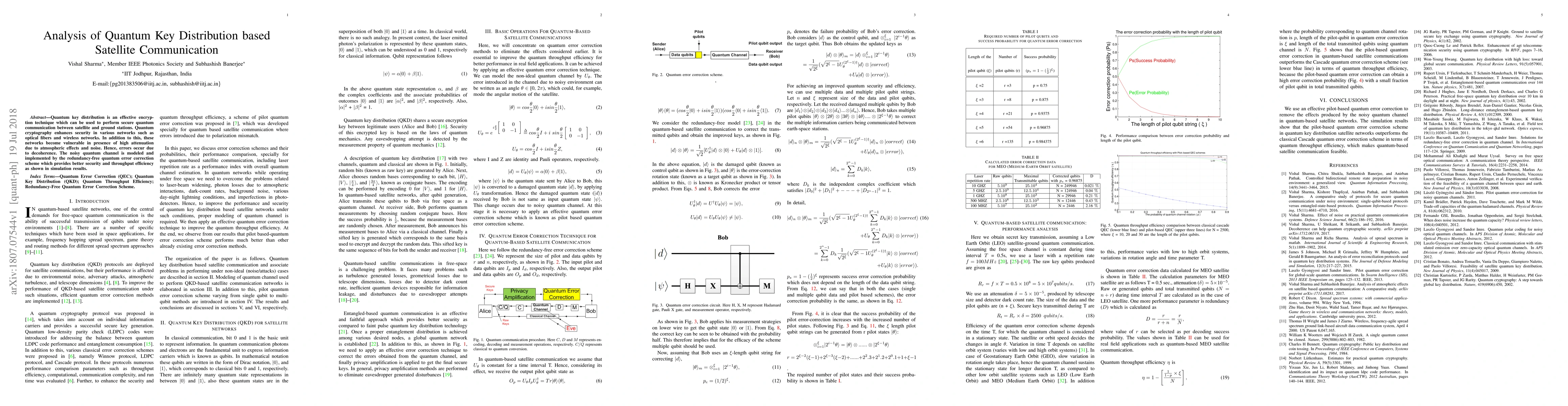 This paper explores quantum key distribution for secure satellite communication, highlighting the use of quantum cryptography to enhance security against atmospheric effects and noise. Simulation results demonstrate improved security and efficiency through a redundancy-free quantum error correction scheme.