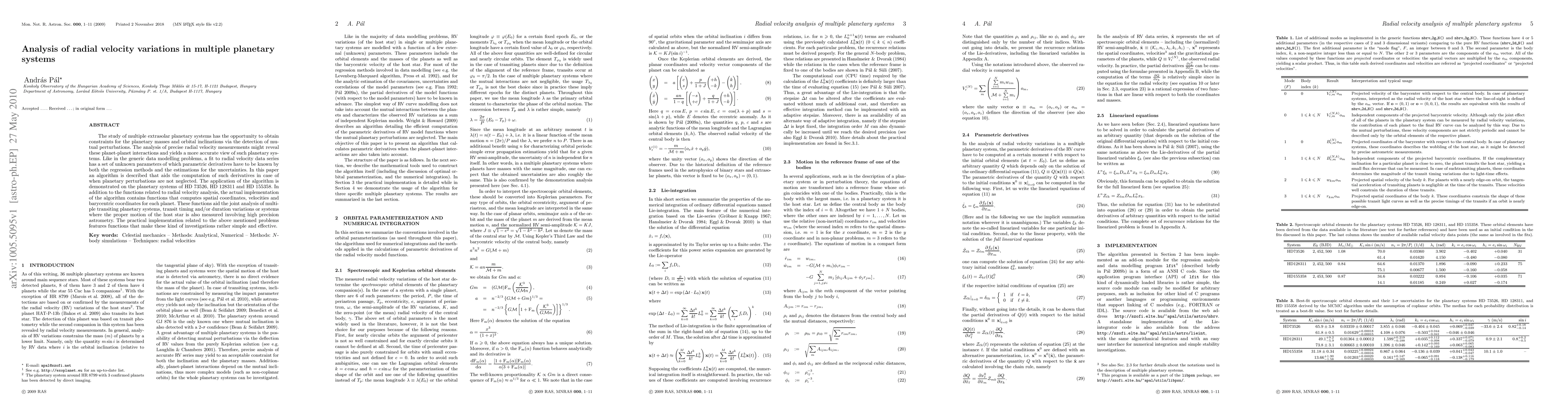 This paper presents an algorithm for computing derivatives in radial velocity data analysis of multiple planetary systems, focusing on detecting mutual perturbations. The algorithm is applied to the systems of HD 73526, HD 128311, and HD 155358, facilitating the computation of spatial coordinates, velocities, and barycentric coordinates for precise analysis.