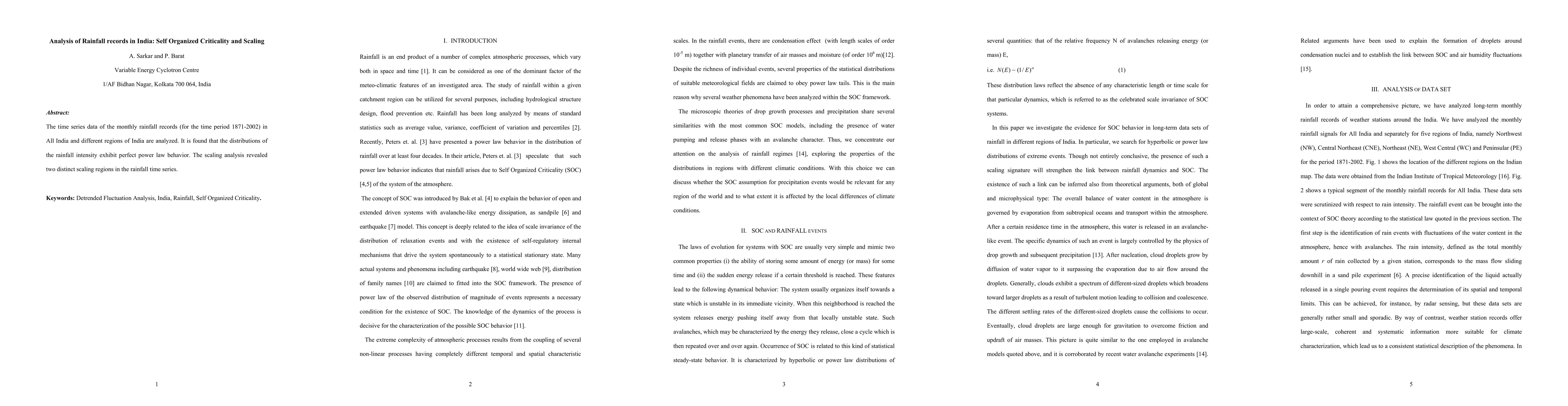 Rainfall records in India show perfect power law behavior and exhibit two distinct scaling regions, indicating self-organized criticality.