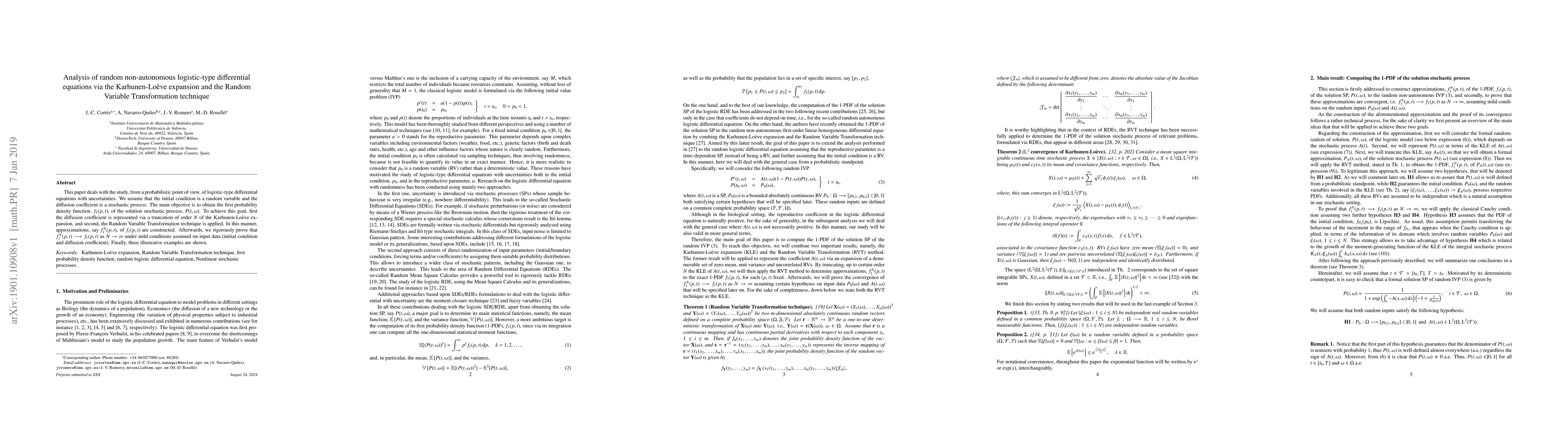 This paper introduces a method to analyze uncertain logistic-type differential equations using the Karhunen-Loève expansion and the Random Variable Transformation technique. It proves that approximations of the solution's probability density function converge to the true function as the expansion order increases, illustrated through three examples.