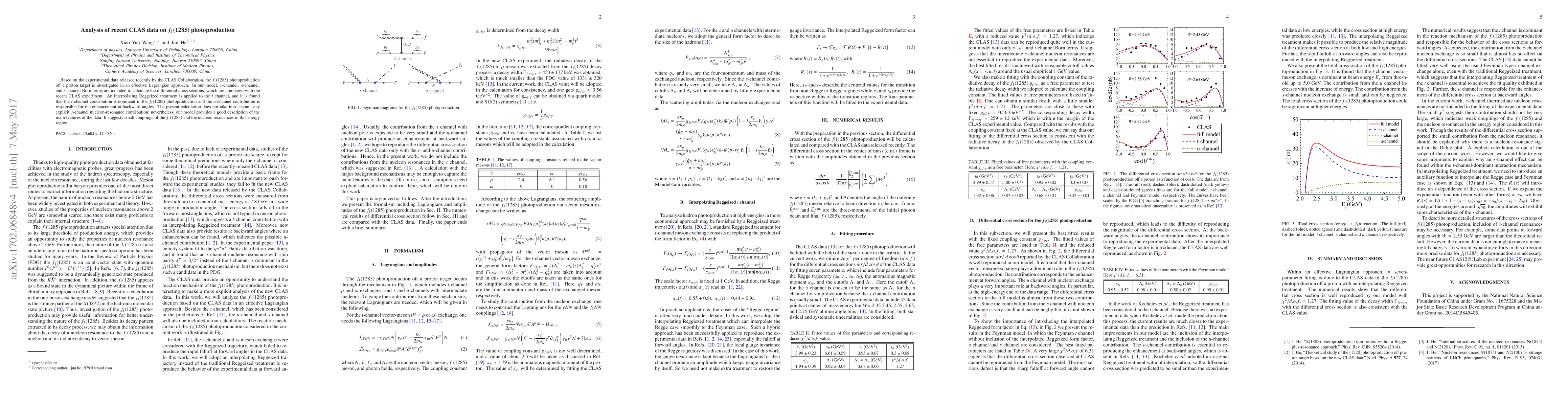 Based on the experimental data released recently by the CLAS Collaboration, the $f_{1}(1285)$ photoproduction off a proton target is investigated in an effective Lagrangian approach. In our model, $s$-channel, $u$-channel, and $t$-channel Born terms are included to calculate the differential cross sections, which are compared with the recent CLAS experiment. An interpolating Reggeized treatment is applied to the $t$ channel, and it is found that the $t$-channel contribution is dominant in the $f_1(1285)$ photoproduction and the $u$-channel contribution is responsible for the enhancement at backward angles. The present calculation does not take into account any explicit $s$-channel nucleon-resonance contribution; nevertheless, our model provides a good description of the main features of the data. It suggests small couplings of the $f_1(1285)$ and the nucleon resonances in this energy region.