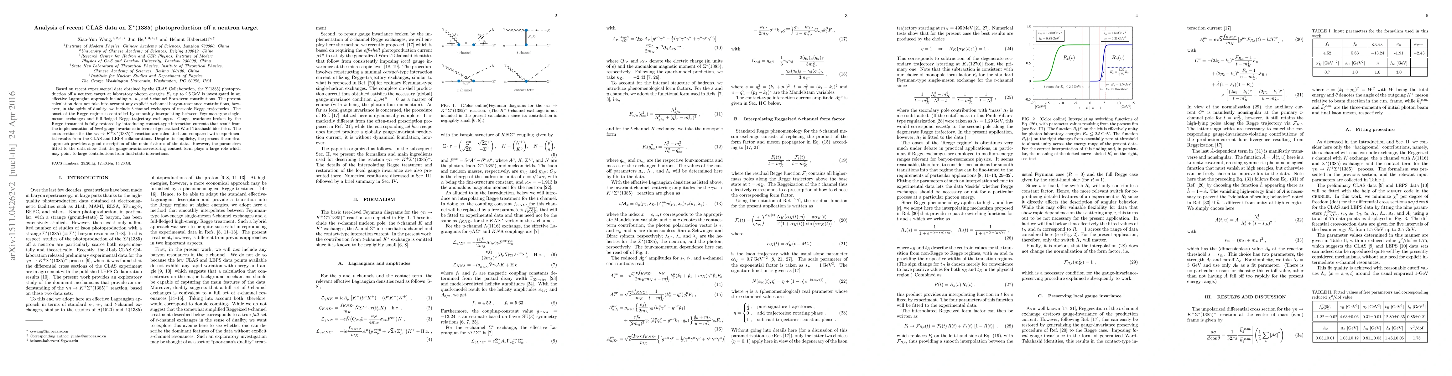 Based on recent experimental data obtained by the CLAS Collaboration, the $\Sigma(1385)$ photoproduction off a neutron target at laboratory photon energies $E_\gamma$ up to 2.5\,GeV is investigated in an effective Lagrangian approach including $s$-, $u$-, and $t$-channel Born-term contributions. The present calculation does not take into account any explicit $s$-channel baryon-resonance contributions, however, in the spirit of duality, we include $t$-channel exchanges of mesonic Regge trajectories. The onset of the Regge regime is controlled by smoothly interpolating between Feynman-type single-meson exchanges and full-fledged Regge-trajectory exchanges. Gauge invariance broken by the Regge treatment is fully restored by introducing contact-type interaction currents that result from the implementation of \textit{local} gauge invariance in terms of generalized Ward-Takahashi identities. The cross sections for the $\gamma n\to K^+\Sigma^*(1385)^-$ reaction are calculated and compared with experimental results from the CLAS and LEPS collaborations. Despite its simplicity, the present theoretical approach provides a good description of the main features of the data. However, the parameters fitted to the data show that the gauge-invariance-restoring contact term plays a large role which may point to large contributions from final-state interactions.