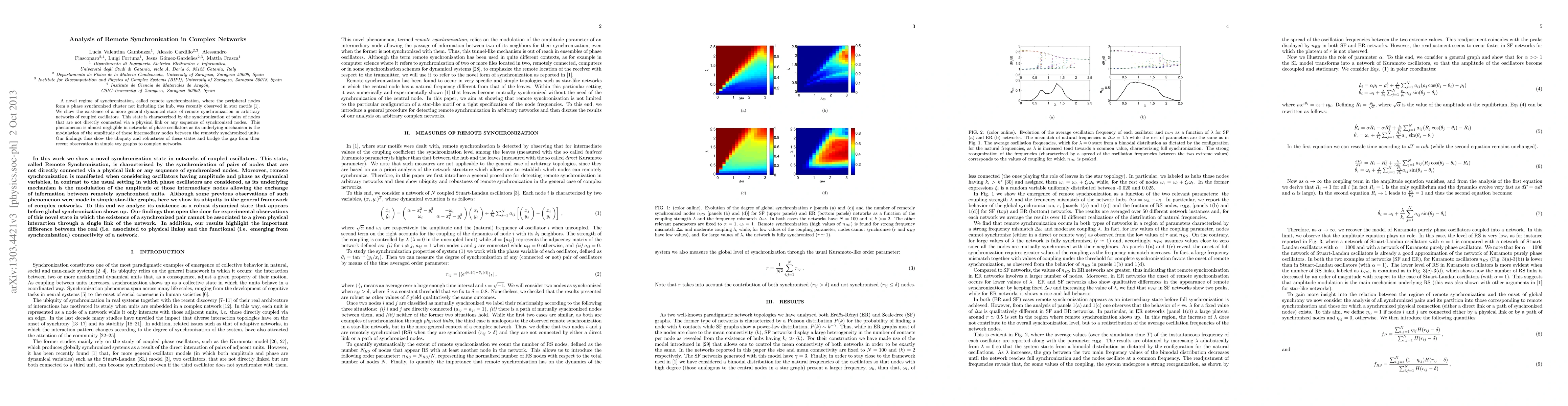 This paper explores the phenomenon of remote synchronization in arbitrary networks, where peripheral nodes form a synchronized cluster excluding the hub. It reveals that this synchronization, driven by amplitude modulation of intermediary nodes, is robust and extends beyond simple star motifs to complex networks.