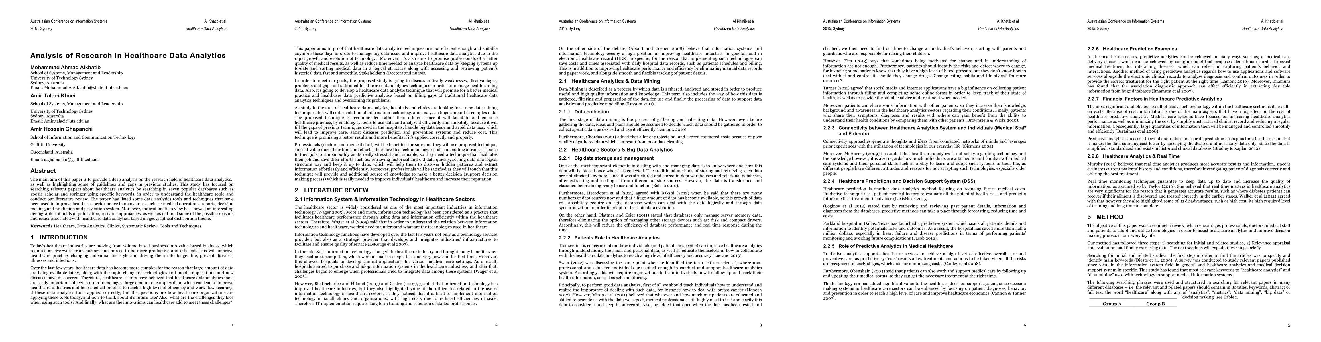 This paper conducts a comprehensive analysis of healthcare data analytics research, reviewing relevant studies from seven databases to identify tools and techniques enhancing healthcare performance. It highlights publication demographics, research approaches, and geographical issues, while also noting gaps and guidelines.