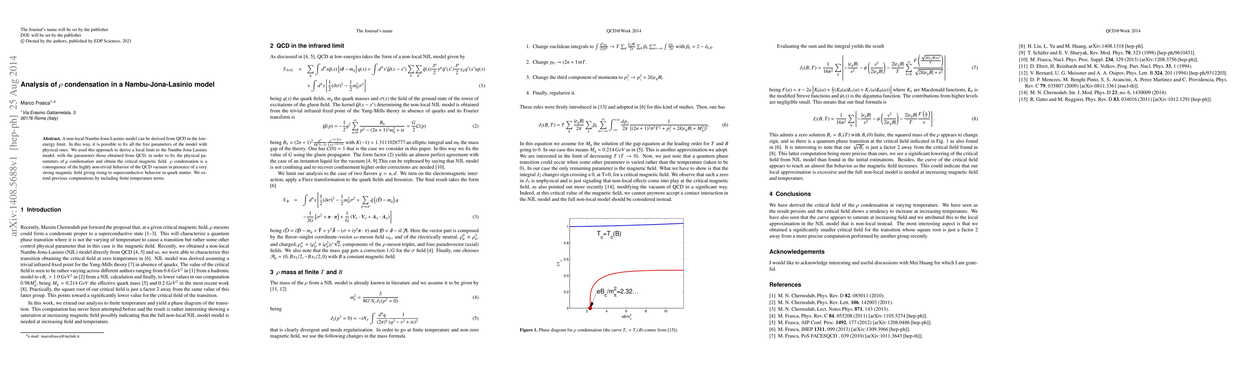 A non-local Nambu-Jona-Lasinio model can be derived from QCD in the low-energy limit. In this way, it is possible to fix all the free parameters of the model with physical ones. We used this approach to derive a local limit to the Nambu-Jona-Lasinio model, with the parameters those obtained from QCD, in order to fix the physical parameters of $\rho$ condensation and obtain the critical magnetic field. $\rho$ condensation is a consequence of the highly non-trivial behavior of the QCD vacuum in presence of a very strong magnetic field giving rising to superconductive behavior in quark matter. We extend previous computations by including finite temperature terms.