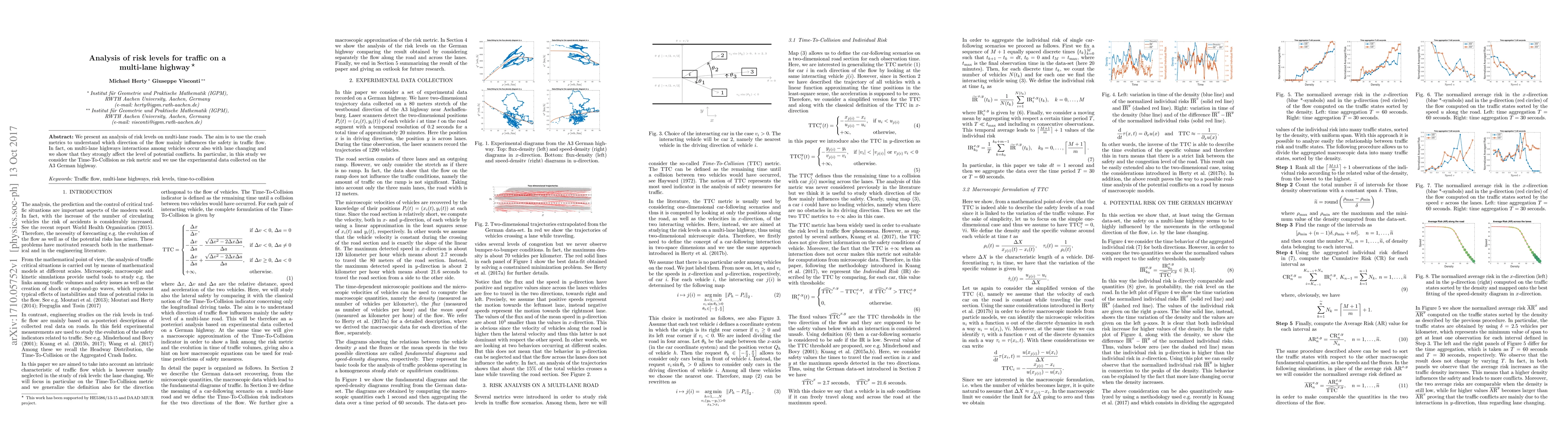 A microscopic approach was used to analyze the risk on a multi-lane highway, focusing on the behavior of vehicles in both directions.