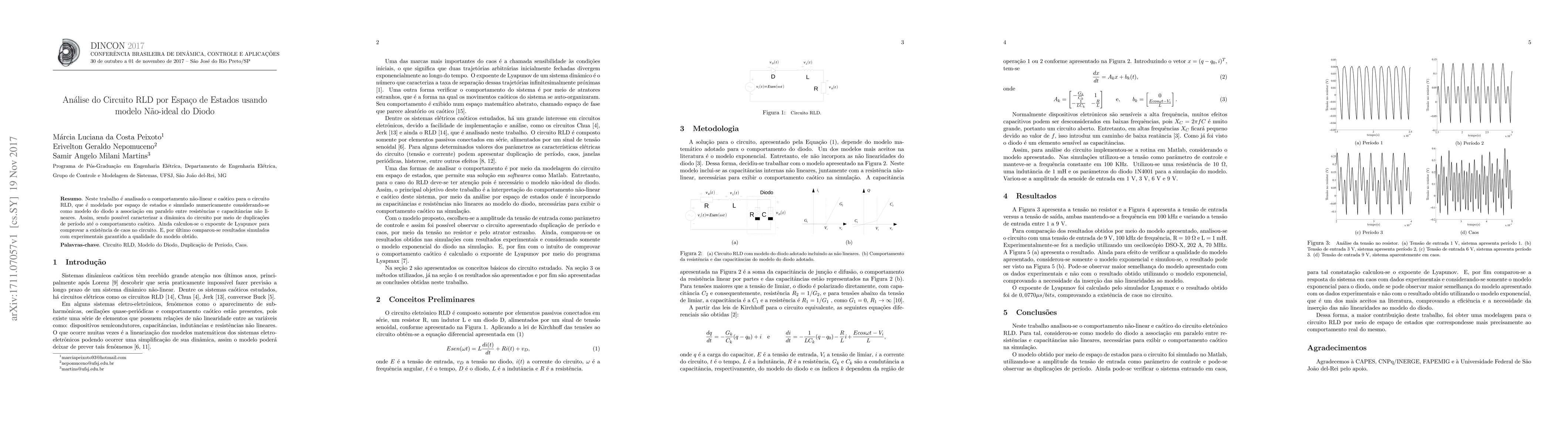 In this work the non-linear and chaotic behaviour for the RLD circuit is analysed, which is modelled by state space and numerically simulated considering the diode model an association between nonlinear resistances and capacitances. It has been possible to characterize the dynamics of the circuit through period doubles and chaotic behaviour. The Lyapunov exponent is calculated to show the chaotic behaviour of this circuit. Simulated results are in good agreement with experimental data.