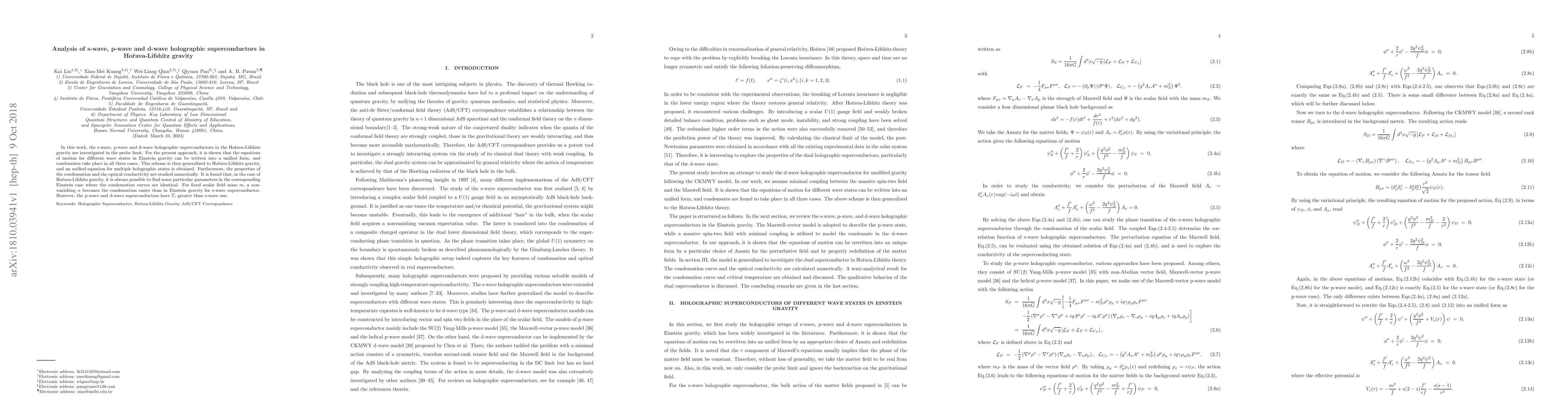 This paper investigates s-wave, p-wave, and d-wave holographic superconductors within Hořava-Lifshitz gravity, showing that condensation occurs in all cases and that optical conductivity properties are numerically studied. It finds that certain parameters in the Einstein gravity case yield identical condensation curves in Hořava-Lifshitz gravity, with p-wave and d-wave superconductors having higher critical temperatures than s-wave.