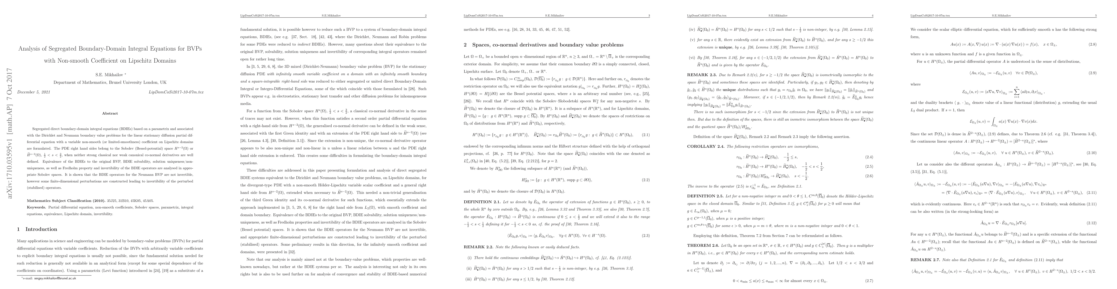 This paper analyzes the use of segregated boundary-domain integral equations for solving linear stationary diffusion PDEs on Lipsitz domains with non-smooth coefficients. It explores their equivalence to original BVPs, solvability, uniqueness, and invertibility in specific Sobolev spaces.