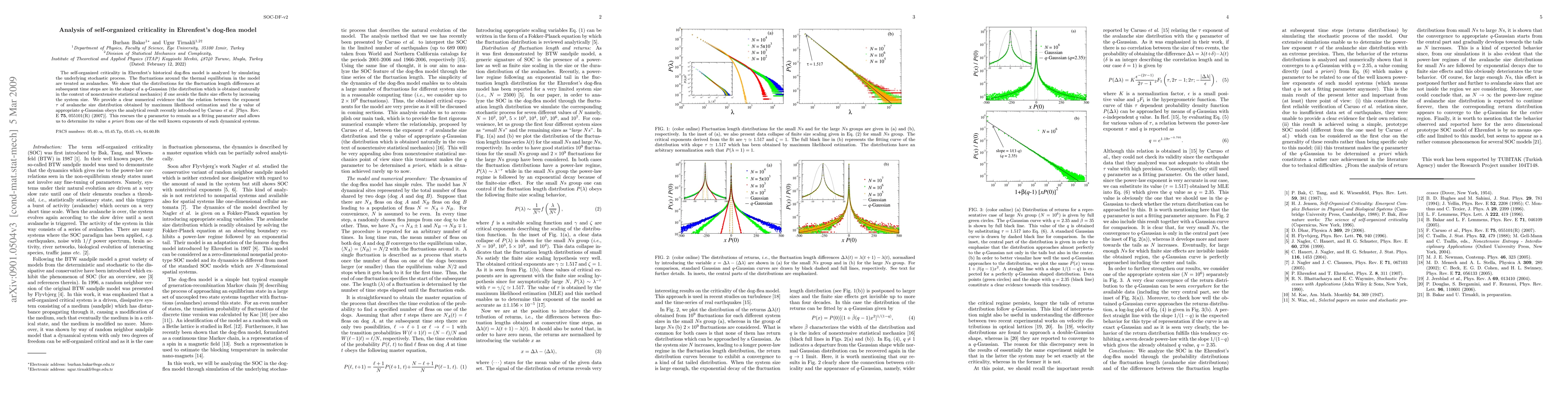 The self-organized criticality in Ehrenfest's historical dog-flea model is analyzed by simulating the underlying stochastic process. The fluctuations around the thermal equilibrium in the model are treated as avalanches. We show that the distributions for the fluctuation length differences at subsequent time steps are in the shape of a $q$-Gaussian (the distribution which is obtained naturally in the context of nonextensive statistical mechanics) if one avoids the finite size effects by increasing the system size. We provide a clear numerical evidence that the relation between the exponent $\tau$ of avalanche size distribution obtained by maximum likelihood estimation and the $q$ value of appropriate q-Gaussian obeys the analytical result recently introduced by Caruso et al. [Phys. Rev. E \textbf{75}, 055101(R) (2007)]. This rescues the q parameter to remain as a fitting parameter and allows us to determine its value a priori from one of the well known exponents of such dynamical systems.