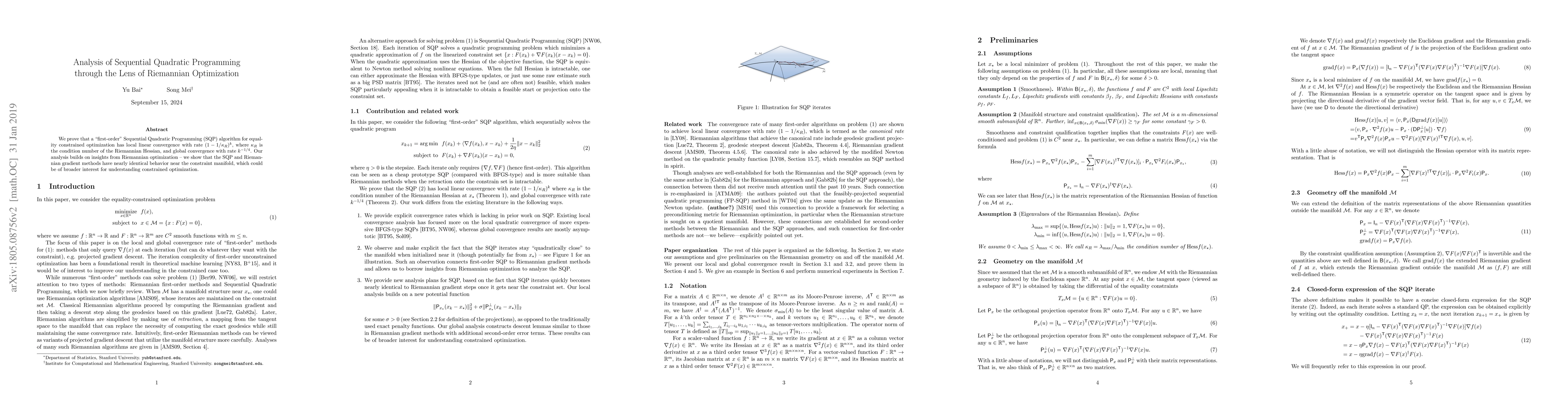 We prove that a "first-order" Sequential Quadratic Programming (SQP) algorithm for equality constrained optimization has local linear convergence with rate $(1-1/\kappa_R)^k$, where $\kappa_R$ is the condition number of the Riemannian Hessian, and global convergence with rate $k^{-1/4}$. Our analysis builds on insights from Riemannian optimization -- we show that the SQP and Riemannian gradient methods have nearly identical behavior near the constraint manifold, which could be of broader interest for understanding constrained optimization.