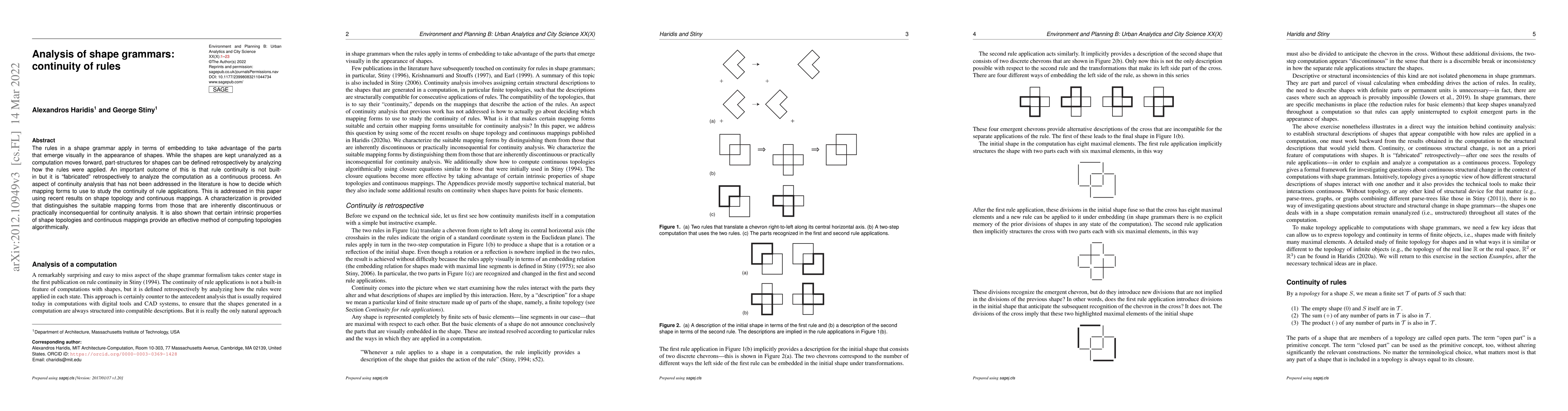 The rules in a shape grammar apply in terms of embedding to take advantage of the parts that emerge visually in the appearance of shapes. While the shapes are kept unanalyzed as a computation moves forward, part-structures for shapes can be defined retrospectively by analyzing how the rules were applied. An important outcome of this is that rule continuity is not builtin but it is "fabricated" retrospectively to analyze the computation as a continuous process. An aspect of continuity analysis that has not been addressed in the literature is how to decide which mapping forms to use to study the continuity of rule applications. This is addressed in this paper using recent results on shape topology and continuous mappings. A characterization is provided that distinguishes the suitable mapping forms from those that are inherently discontinuous or practically inconsequential for continuity analysis. It is also shown that certain intrinsic properties of shape topologies and continuous mappings provide an effective method of computing topologies algorithmically.