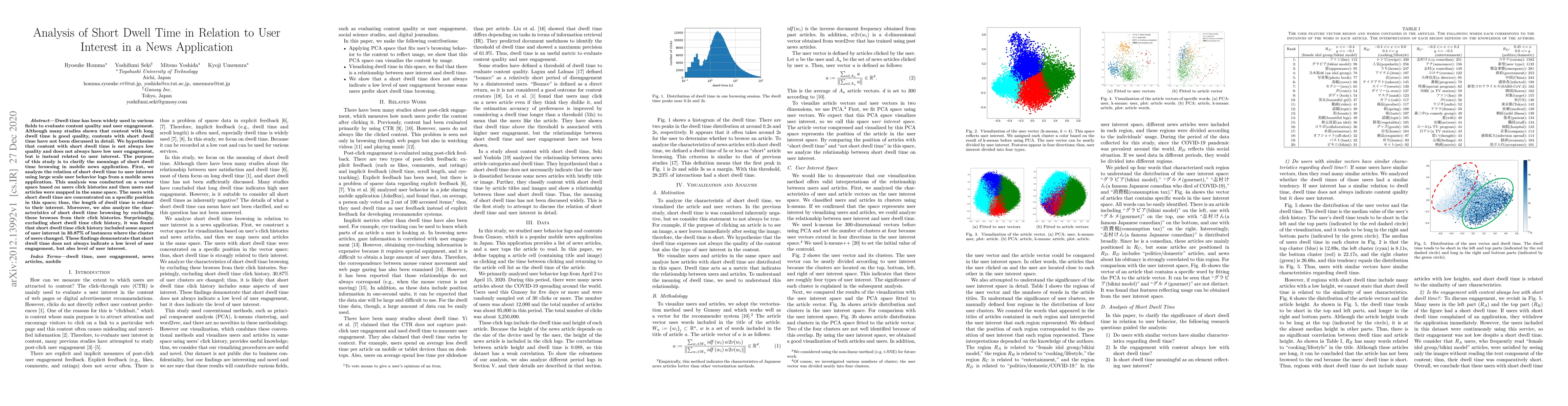This study investigates the relationship between short dwell time in mobile news applications and user interest, finding that short dwell time does not always indicate low engagement but can reflect high levels of user interest. Analysis using large-scale user behavior logs revealed that users with short dwell times often cluster together, indicating focused interest, and that 30.87% of short dwell time interactions involve meaningful user interest.