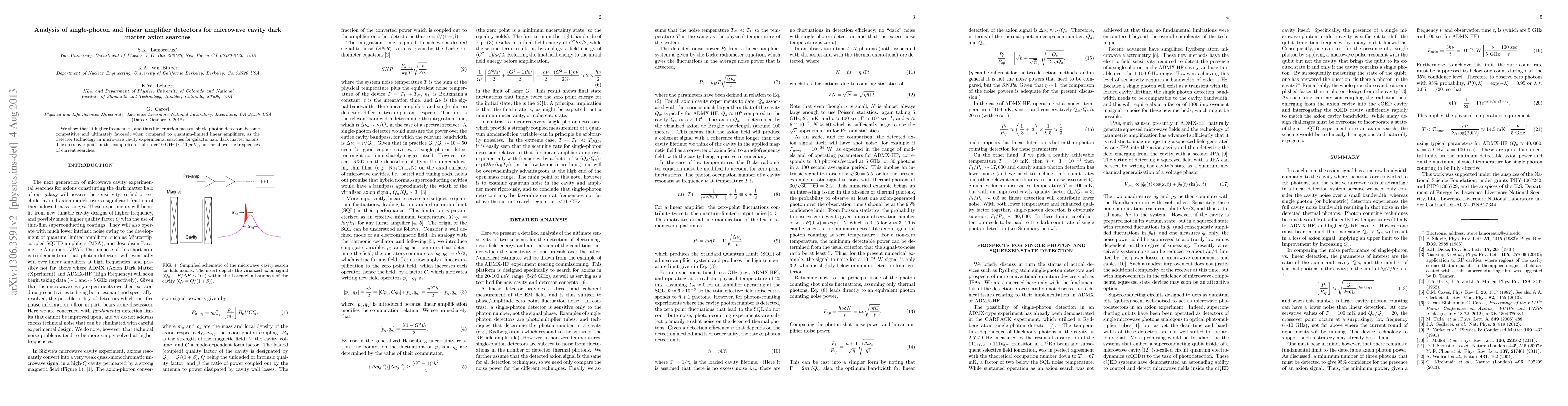 Summary: This study finds that single-photon detectors outperform quantum-limited linear amplifiers for microwave cavity searches of axion dark matter at higher frequencies and masses, with a crossover point around 10 GHz (40 µeV), suggesting a shift in preferred technology for future experiments.
