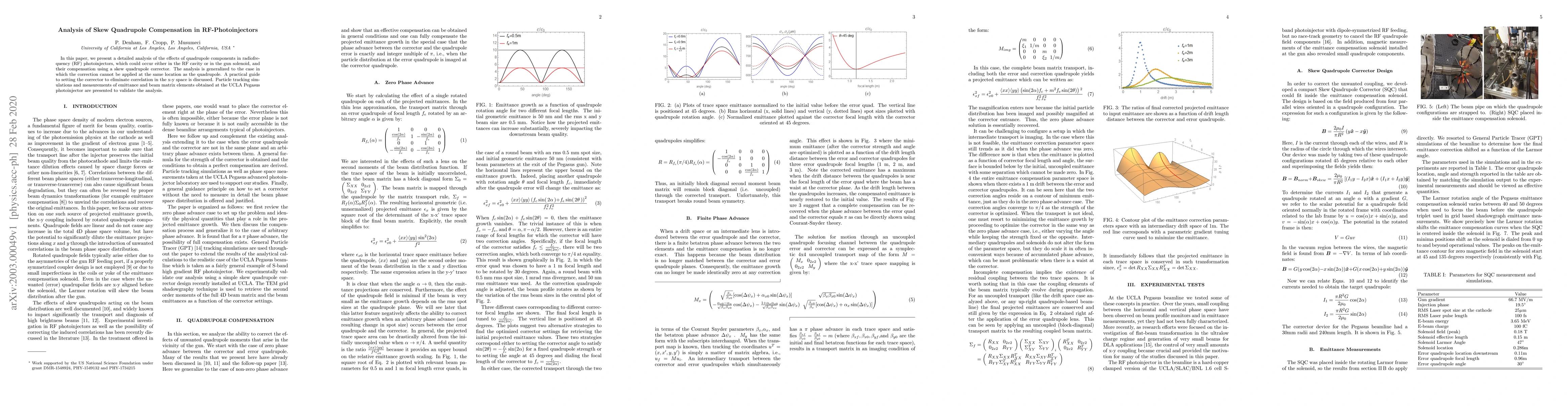 Researchers analyzed the effects of quadrupole components in RF photoinjectors and developed a practical guide for using skew quadrupole correctors to compensate for these effects, improving beam quality and reducing emittance.