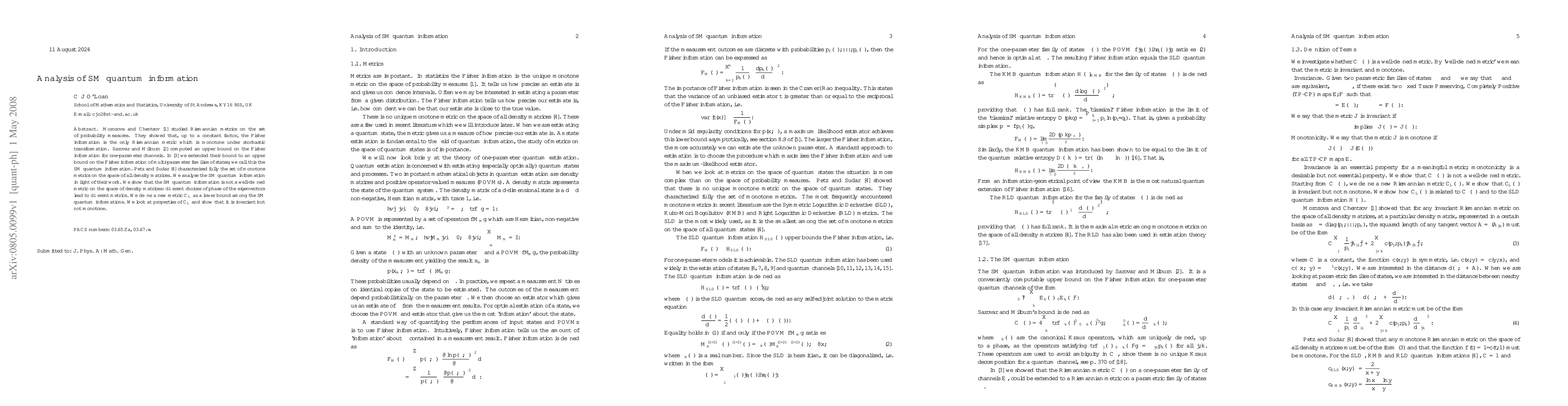 Morozova and Chentsov (Morozova and Chentsov 90) studied Riemannian metrics on the set of probability measures. They showed that, up to a constant factor, the Fisher information is the only Riemannian metric which is monotone under stochastic transformation. Sarovar and Milburn (Sarovar and Milburn 06) computed an upper bound on the Fisher information for one-parameter channels. In (O'Loan 07) we extended their bound to an upper bound on the Fisher information of multi-parameter families of states; we call this the SM quantum information. Petz and Sud\'ar (Petz 95) characterized fully the set of monotone metrics on the space of all density matrices. We analyse the SM quantum information in light of their work. We show that the SM quantum information is not a well-defined metric on the space of density matrices: different choices of phase of the eigenvectors lead to different metrics. We define a new metric C_L as a lower bound among the SM quantum informations. We look at properties of C_L and show that it is invariant but not monotone.