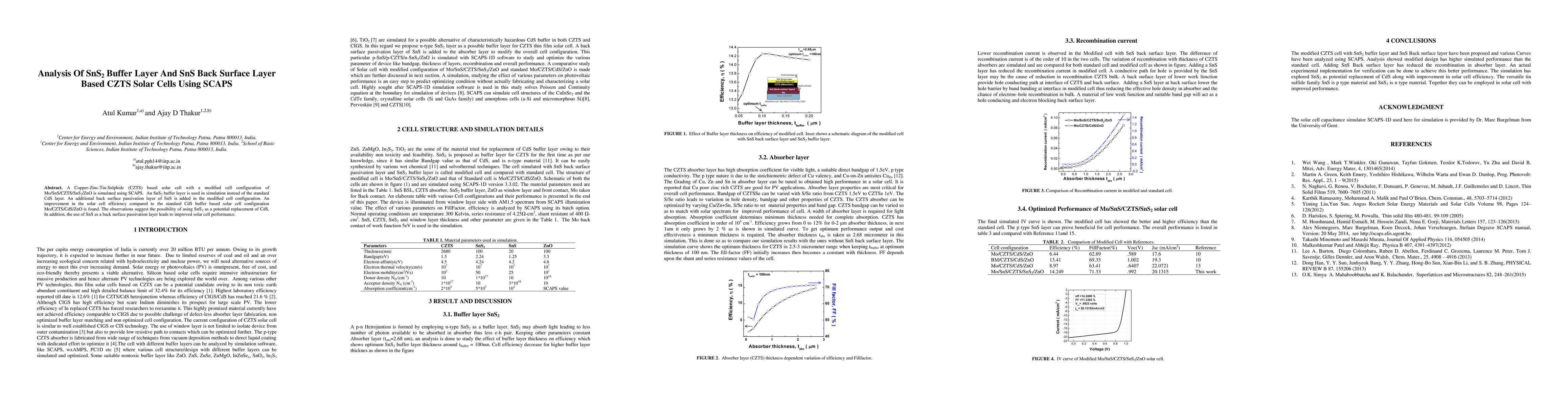 This paper simulates a modified CZTS solar cell configuration using SCAPS, replacing the CdS buffer layer with SnS2 and adding a SnS back surface passivation layer. The results show improved efficiency compared to the standard CdS-based configuration, suggesting SnS2 as a potential CdS replacement and highlighting the benefits of SnS back surface passivation.