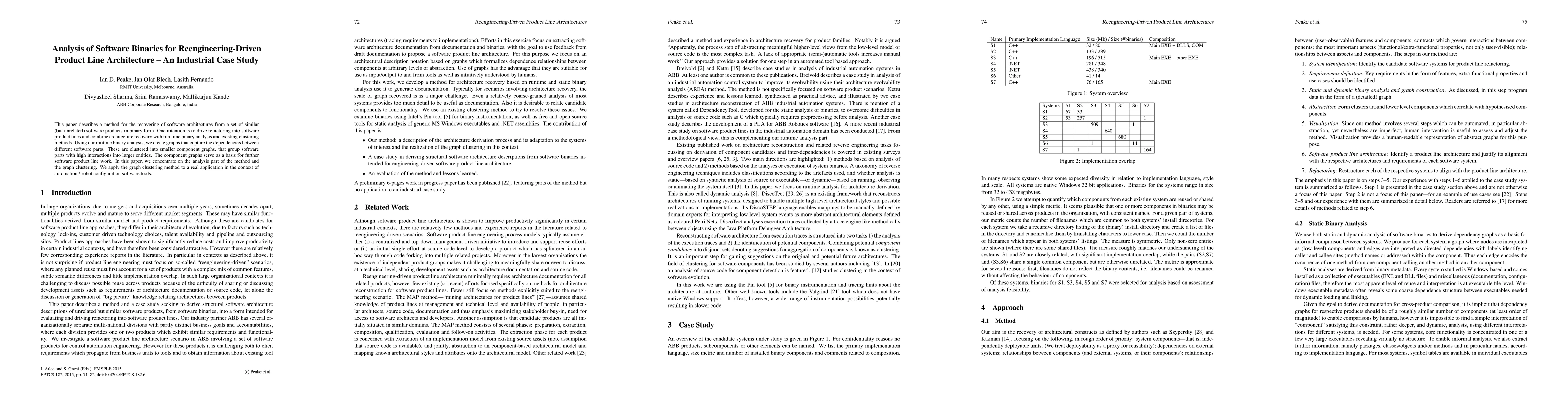 Researchers developed a method to recover software architectures from similar products, enabling refactoring for product lines. They applied this method to real-world automation software, achieving successful graph clustering and component grouping.