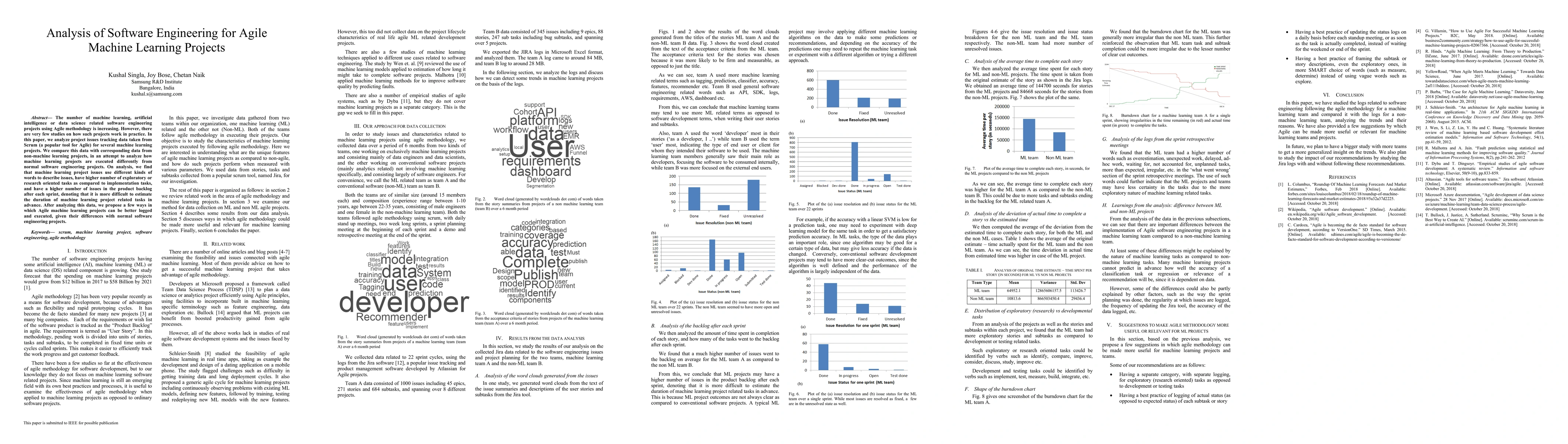 The number of machine learning, artificial intelligence or data science related software engineering projects using Agile methodology is increasing. However, there are very few studies on how such projects work in practice. In this paper, we analyze project issues tracking data taken from Scrum (a popular tool for Agile) for several machine learning projects. We compare this data with corresponding data from non-machine learning projects, in an attempt to analyze how machine learning projects are executed differently from normal software engineering projects. On analysis, we find that machine learning project issues use different kinds of words to describe issues, have higher number of exploratory or research oriented tasks as compared to implementation tasks, and have a higher number of issues in the product backlog after each sprint, denoting that it is more difficult to estimate the duration of machine learning project related tasks in advance. After analyzing this data, we propose a few ways in which Agile machine learning projects can be better logged and executed, given their differences with normal software engineering projects.