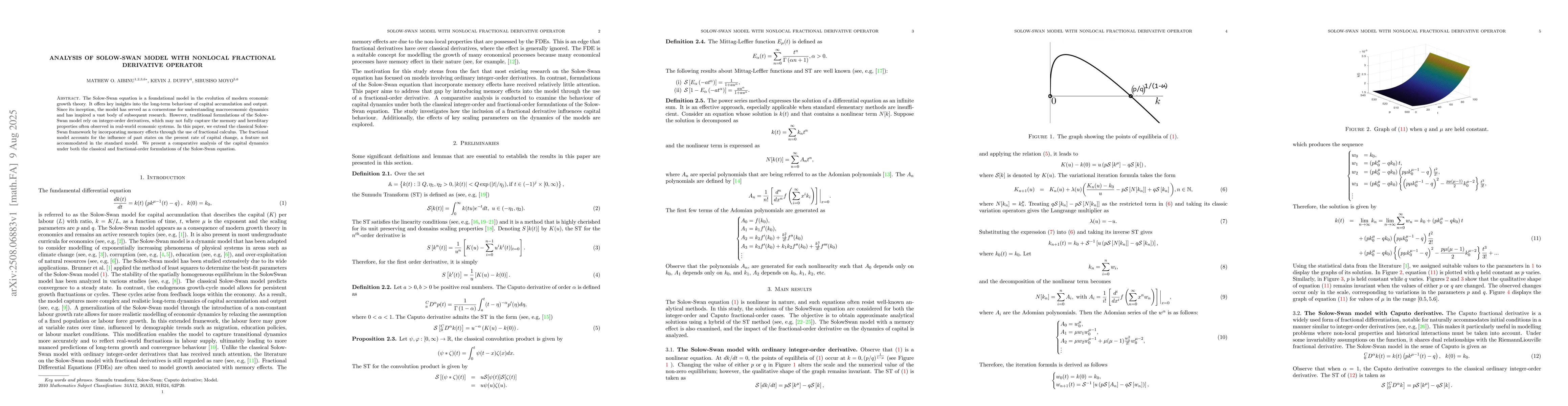 The Solow-Swan equation is a foundational model in the evolution of modern economic growth theory. It offers key insights into the long-term behaviour of capital accumulation and output. Since its inception, the model has served as a cornerstone for understanding macroeconomic dynamics and has inspired a vast body of subsequent research. However, traditional formulations of the Solow-Swan model rely on integer-order derivatives, which may not fully capture the memory and hereditary properties often observed in real-world economic systems. In this paper, we extend the classical Solow-Swan framework by incorporating memory effects through the use of fractional calculus. The fractional model accounts for the influence of past states on the present rate of capital change, a feature not accommodated in the standard model. We present a comparative analysis of the capital dynamics under both the classical and fractional-order formulations of the Solow-Swan equation.