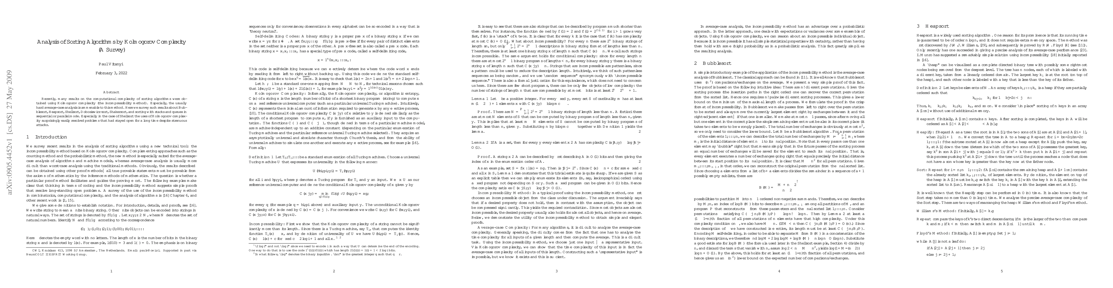 This paper surveys the application of Kolmogorov complexity to analyze the computational complexity of various sorting algorithms, including Bubblesort, Heapsort, Shellsort, and others. It highlights how this method, particularly for Shellsort, has resolved longstanding open problems in average-case analysis.