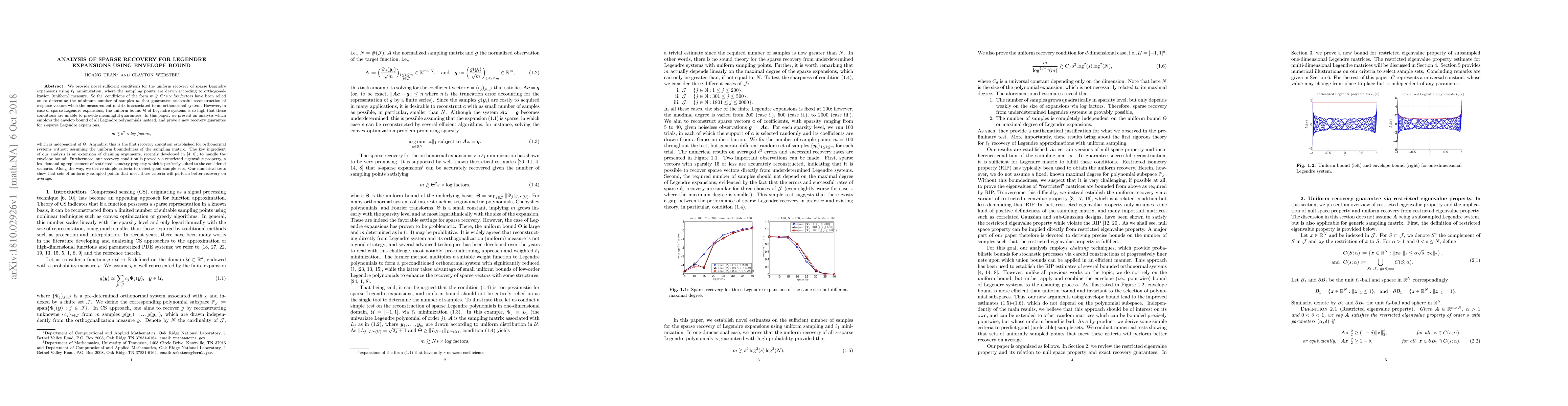 This research contributes to the understanding of sparse reconstruction from underdetermined Legendre systems, providing a theoretical justification and improving recovery conditions.