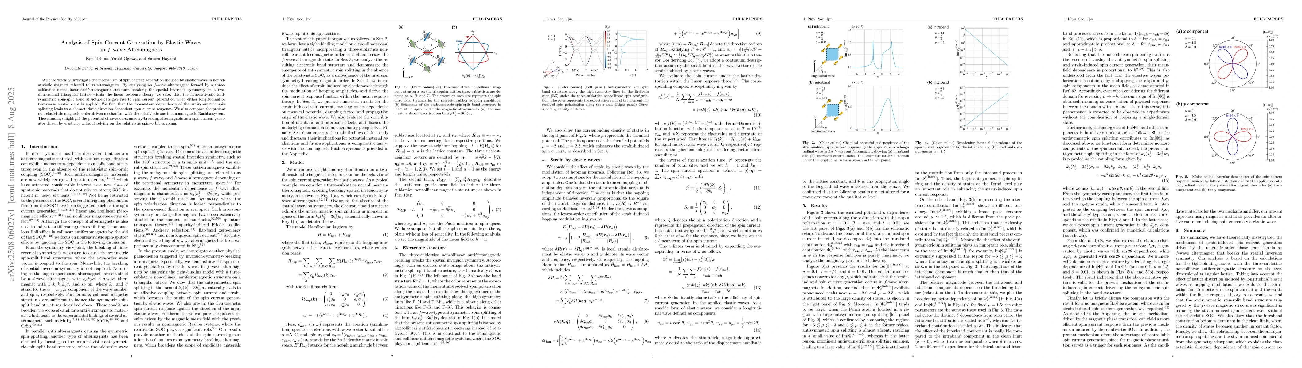 We theoretically investigate the mechanism of spin current generation induced by elastic waves in nonrelativistic magnets referred to as altermagnets. By analyzing an $f$-wave altermagnet formed by a three-sublattice noncollinear antiferromagnetic structure breaking the spatial inversion symmetry on a two-dimensional triangular lattice within the linear response theory, we show that the nonrelativistic antisymmetric spin-split band structure can give rise to spin current generation when either longitudinal or transverse elastic wave is applied. We find that the momentum dependence of the antisymmetric spin splitting leads to a characteristic direction-dependent spin current response. We also compare the present nonrelativistic magnetic-order-driven mechanism with the relativistic one in a nonmagnetic Rashba system. These findings highlight the potential of invesion-symmetry-breaking altermagnets as a spin current generator driven by elasticity without relying on the relativistic spin-orbit coupling.