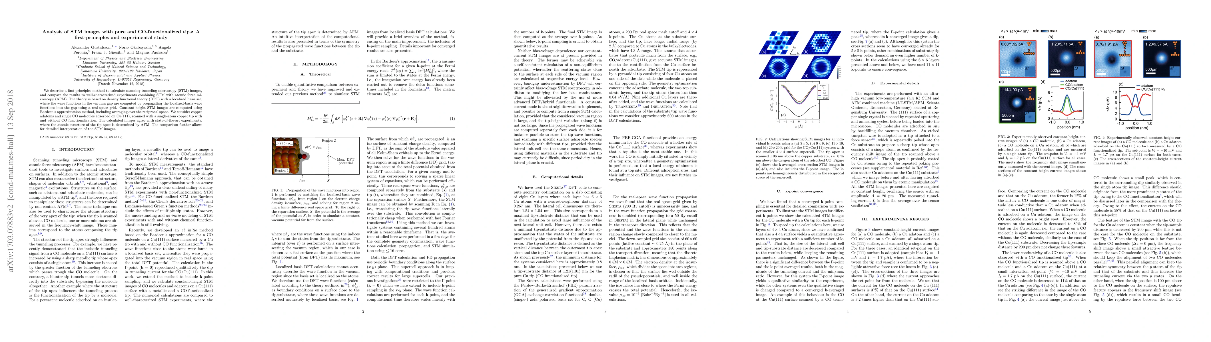 This paper combines first-principles calculations based on density functional theory with experimental STM and AFM data to analyze the imaging of copper adatoms and CO molecules on Cu(111) using both pure and CO-functionalized copper tips, achieving agreement between theory and experiment. The study provides insights into the atomic structure of the tip apex and the interpretation of STM images.