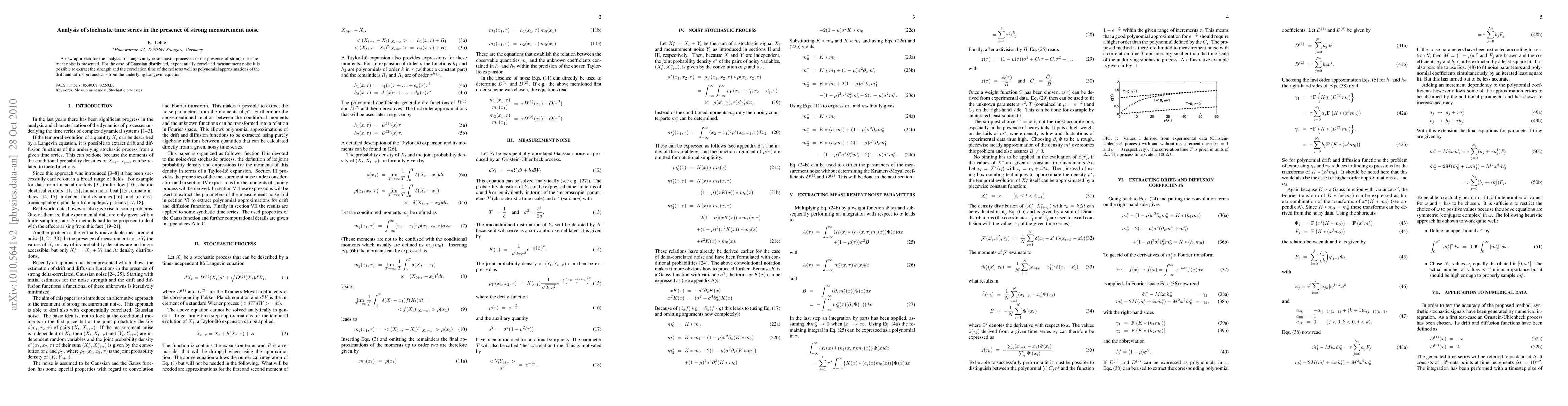 A new approach for the analysis of Langevin-type stochastic processes in the presence of strong measurement noise is presented. For the case of Gaussian distributed, exponentially correlated, measurement noise it is possible to extract the strength and the correlation time of the noise as well as polynomial approximations of the drift and diffusion functions from the underlying Langevin equation.